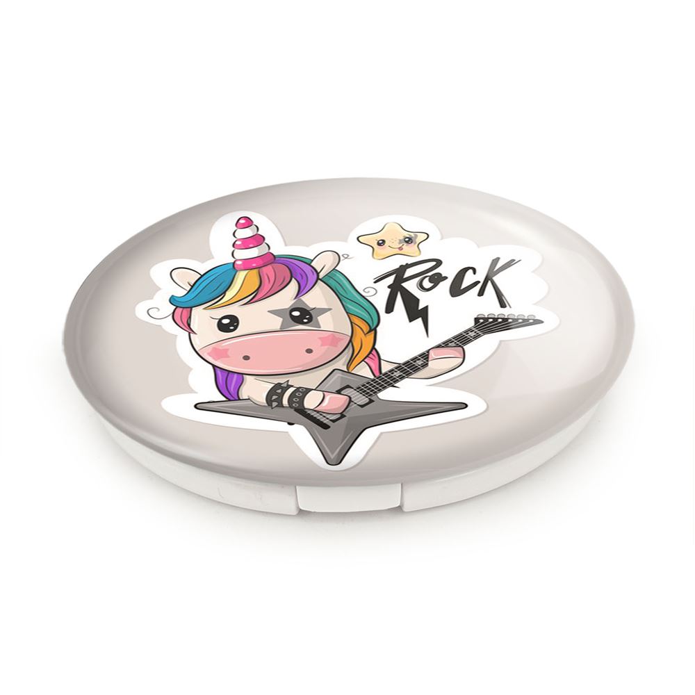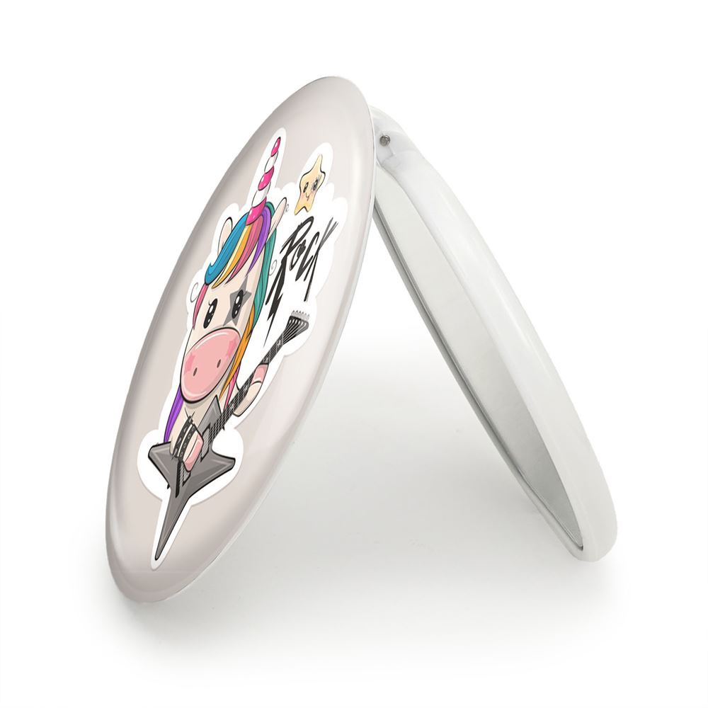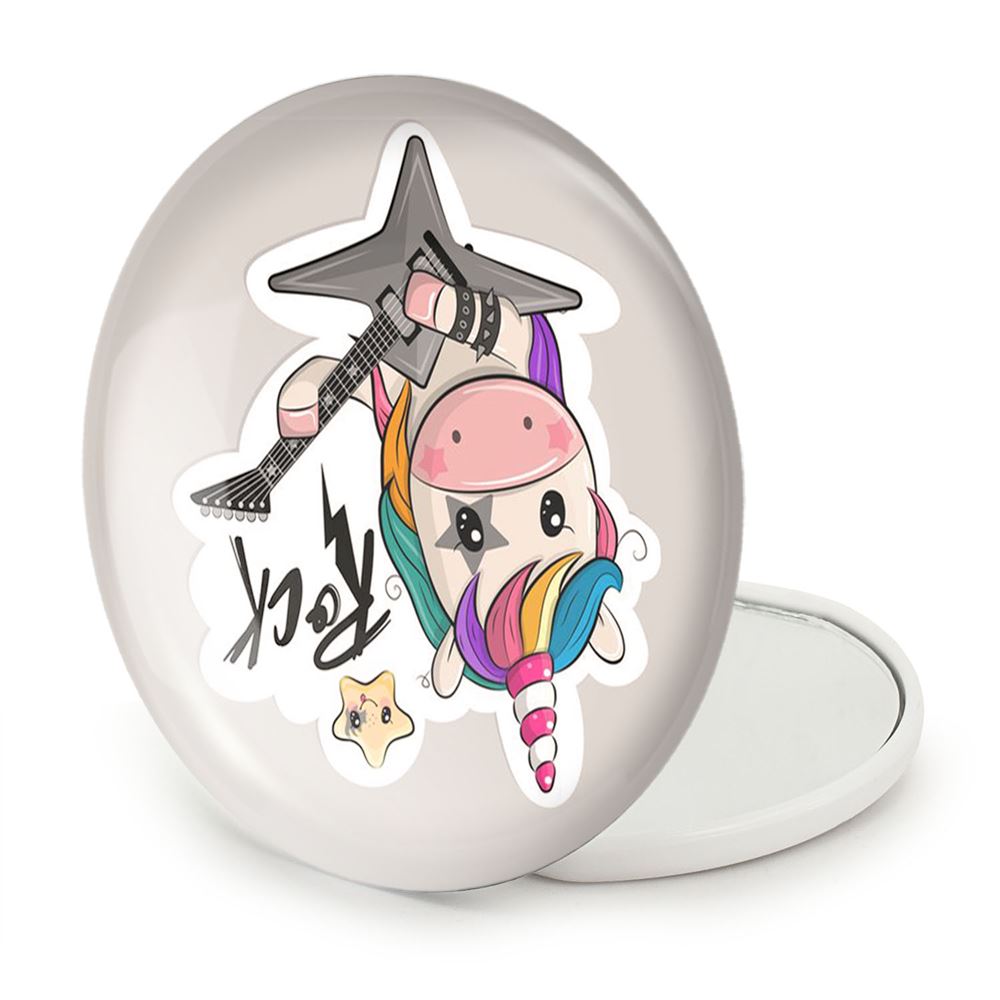 آینه های تاشو اسب تک شاخ یونیکورن خندالو، از جنس پلاستیک فشرده ABS تولید شده و به رنگ سفید می باشد. یکی از آینه ها ابعاد واقعی را نشان داده و دیگری با قابلیت بزرگنمایی، جزئیات را بهتر نمایش می دهد. ابعاد هر یک از آینه ها، دایره ای به قطر 7.5 سانت می باشد که نه خیلی بزرگ و غیر قابل استفاده در کیف آرایشی ست و نه خیلی کوچک که تصویر خاصی در آن مشاهده نشود. آینه تاشو اسب تک شاخ یونیکورن سایزی استاندارد و کارآمد دارد و در هر کیفی جا میگیرد. چاپ طرح بوسیله چاپگرهای دیجیتال شش رنگ با شفافیت و کیفیتی مثال زدنی بر روی یک وجه از بدنه ی آینه انجام گرفته و با روکش لمینت حرارتی پوشیده شده که در مقابل آسیب و خط و خش مقاوم بوده و کیفیت بالایی دارد. درب آینه بوسیله قفل بدنه ی آن، باز نمی ماند و کاملا بسته می شود و مناسب قرار گیری در کیف لوازم آرایش و کیف های کوچک دستی نیز هست. آینه های تاشو اسب تک شاخ یونیکورن خندالو با تنوع طرحی بسیار بالا، سلیقه هر نوع مخاطبی را تامین میکند.