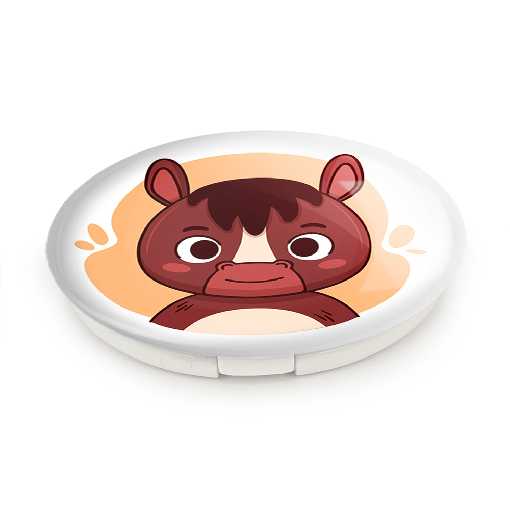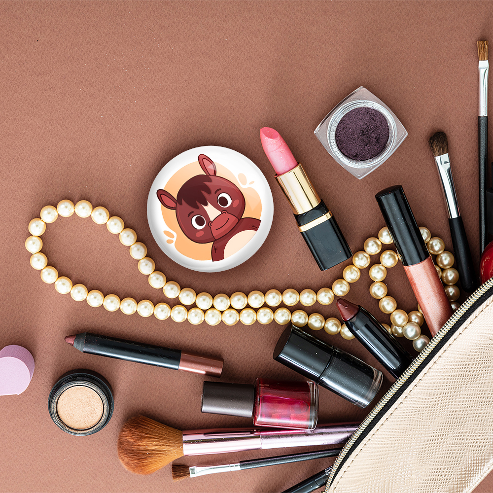 آینه های تاشو اسب حیوانات بامزه خندالو، از جنس پلاستیک فشرده ABS تولید شده و به رنگ سفید می باشد. یکی از آینه ها ابعاد واقعی را نشان داده و دیگری با قابلیت بزرگنمایی، جزئیات را بهتر نمایش می دهد. ابعاد هر یک از آینه ها، دایره ای به قطر 7.5 سانت می باشد که نه خیلی بزرگ و غیر قابل استفاده در کیف آرایشی ست و نه خیلی کوچک که تصویر خاصی در آن مشاهده نشود. آینه تاشو اسب حیوانات بامزه سایزی استاندارد و کارآمد دارد و در هر کیفی جا میگیرد. چاپ طرح بوسیله چاپگرهای دیجیتال شش رنگ با شفافیت و کیفیتی مثال زدنی بر روی یک وجه از بدنه ی آینه انجام گرفته و با روکش لمینت حرارتی پوشیده شده که در مقابل آسیب و خط و خش مقاوم بوده و کیفیت بالایی دارد. درب آینه بوسیله قفل بدنه ی آن، باز نمی ماند و کاملا بسته می شود و مناسب قرار گیری در کیف لوازم آرایش و کیف های کوچک دستی نیز هست. آینه های تاشو اسب حیوانات بامزه خندالو با تنوع طرحی بسیار بالا، سلیقه هر نوع مخاطبی را تامین میکند.
