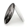آینه های تاشو استاد لطفی خندالو، از جنس پلاستیک فشرده ABS تولید شده و به رنگ سفید می باشد. یکی از آینه ها ابعاد واقعی را نشان داده و دیگری با قابلیت بزرگنمایی، جزئیات را بهتر نمایش می دهد. ابعاد هر یک از آینه ها، دایره ای به قطر 7.5 سانت می باشد که نه خیلی بزرگ و غیر قابل استفاده در کیف آرایشی ست و نه خیلی کوچک که تصویر خاصی در آن مشاهده نشود. آینه تاشو استاد لطفی سایزی استاندارد و کارآمد دارد و در هر کیفی جا میگیرد. چاپ طرح بوسیله چاپگرهای دیجیتال شش رنگ با شفافیت و کیفیتی مثال زدنی بر روی یک وجه از بدنه ی آینه انجام گرفته و با روکش لمینت حرارتی پوشیده شده که در مقابل آسیب و خط و خش مقاوم بوده و کیفیت بالایی دارد. درب آینه بوسیله قفل بدنه ی آن، باز نمی ماند و کاملا بسته می شود و مناسب قرار گیری در کیف لوازم آرایش و کیف های کوچک دستی نیز هست. آینه های تاشو استاد لطفی خندالو با تنوع طرحی بسیار بالا، سلیقه هر نوع مخاطبی را تامین میکند.