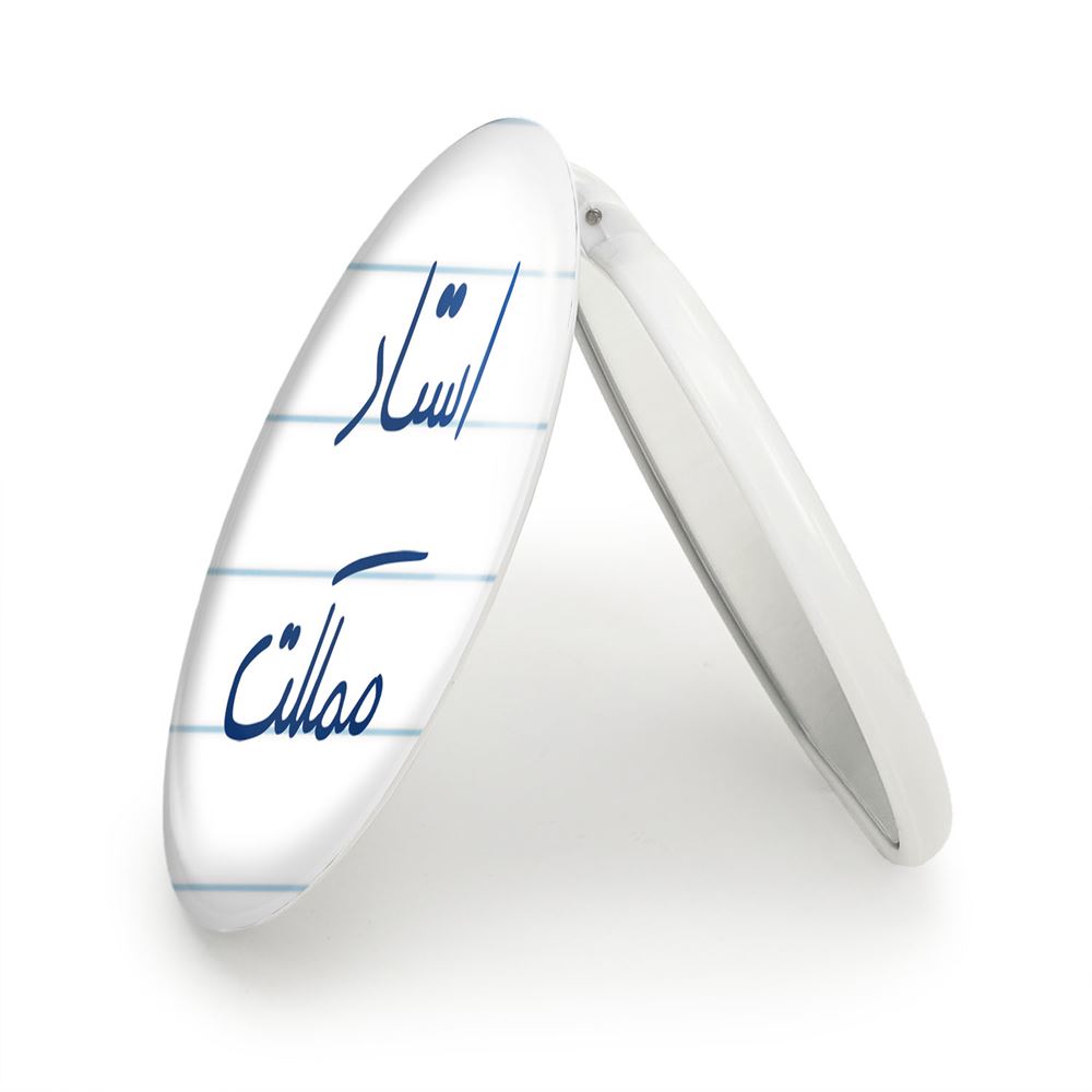 آینه های تاشو استاد مملکت خندالو، از جنس پلاستیک فشرده ABS تولید شده و به رنگ سفید می باشد. یکی از آینه ها ابعاد واقعی را نشان داده و دیگری با قابلیت بزرگنمایی، جزئیات را بهتر نمایش می دهد. ابعاد هر یک از آینه ها، دایره ای به قطر 7.5 سانت می باشد که نه خیلی بزرگ و غیر قابل استفاده در کیف آرایشی ست و نه خیلی کوچک که تصویر خاصی در آن مشاهده نشود. آینه تاشو استاد مملکت سایزی استاندارد و کارآمد دارد و در هر کیفی جا میگیرد. چاپ طرح بوسیله چاپگرهای دیجیتال شش رنگ با شفافیت و کیفیتی مثال زدنی بر روی یک وجه از بدنه ی آینه انجام گرفته و با روکش لمینت حرارتی پوشیده شده که در مقابل آسیب و خط و خش مقاوم بوده و کیفیت بالایی دارد. درب آینه بوسیله قفل بدنه ی آن، باز نمی ماند و کاملا بسته می شود و مناسب قرار گیری در کیف لوازم آرایش و کیف های کوچک دستی نیز هست. آینه های تاشو استاد مملکت خندالو با تنوع طرحی بسیار بالا، سلیقه هر نوع مخاطبی را تامین میکند.
