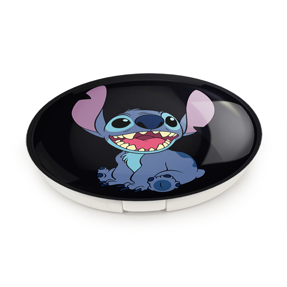 آینه های تاشو استیچ (Stitch) خندالو، از جنس پلاستیک فشرده ABS تولید شده و به رنگ سفید می باشد. یکی از آینه ها ابعاد واقعی را نشان داده و دیگری با قابلیت بزرگنمایی، جزئیات را بهتر نمایش می دهد. ابعاد هر یک از آینه ها، دایره ای به قطر 7.5 سانت می باشد که نه خیلی بزرگ و غیر قابل استفاده در کیف آرایشی ست و نه خیلی کوچک که تصویر خاصی در آن مشاهده نشود. آینه تاشو استیچ (Stitch) سایزی استاندارد و کارآمد دارد و در هر کیفی جا میگیرد. چاپ طرح بوسیله چاپگرهای دیجیتال شش رنگ با شفافیت و کیفیتی مثال زدنی بر روی یک وجه از بدنه ی آینه انجام گرفته و با روکش لمینت حرارتی پوشیده شده که در مقابل آسیب و خط و خش مقاوم بوده و کیفیت بالایی دارد. درب آینه بوسیله قفل بدنه ی آن، باز نمی ماند و کاملا بسته می شود و مناسب قرار گیری در کیف لوازم آرایش و کیف های کوچک دستی نیز هست. آینه های تاشو استیچ (Stitch) خندالو با تنوع طرحی بسیار بالا، سلیقه هر نوع مخاطبی را تامین میکند.