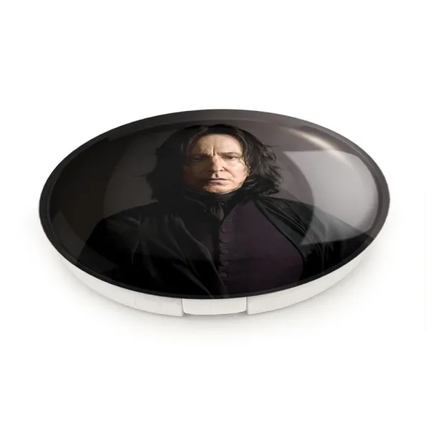 آینه های تاشو اسنیپ هری پاتر Harry Potter خندالو، از جنس پلاستیک فشرده ABS تولید شده و به رنگ سفید می باشد. یکی از آینه ها ابعاد واقعی را نشان داده و دیگری با قابلیت بزرگنمایی، جزئیات را بهتر نمایش می دهد. ابعاد هر یک از آینه ها، دایره ای به قطر 7.5 سانت می باشد که نه خیلی بزرگ و غیر قابل استفاده در کیف آرایشی ست و نه خیلی کوچک که تصویر خاصی در آن مشاهده نشود. آینه تاشو اسنیپ هری پاتر Harry Potter سایزی استاندارد و کارآمد دارد و در هر کیفی جا میگیرد. چاپ طرح بوسیله چاپگرهای دیجیتال شش رنگ با شفافیت و کیفیتی مثال زدنی بر روی یک وجه از بدنه ی آینه انجام گرفته و با روکش لمینت حرارتی پوشیده شده که در مقابل آسیب و خط و خش مقاوم بوده و کیفیت بالایی دارد. درب آینه بوسیله قفل بدنه ی آن، باز نمی ماند و کاملا بسته می شود و مناسب قرار گیری در کیف لوازم آرایش و کیف های کوچک دستی نیز هست. آینه های تاشو اسنیپ هری پاتر Harry Potter خندالو با تنوع طرحی بسیار بالا، سلیقه هر نوع مخاطبی را تامین میکند.