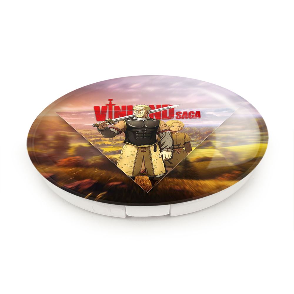 آینه های تاشو اسکلاد و تورفین انیمه حماسه وینلند Vinland Saga خندالو، از جنس پلاستیک فشرده ABS تولید شده و به رنگ سفید می باشد. یکی از آینه ها ابعاد واقعی را نشان داده و دیگری با قابلیت بزرگنمایی، جزئیات را بهتر نمایش می دهد. ابعاد هر یک از آینه ها، دایره ای به قطر 7.5 سانت می باشد که نه خیلی بزرگ و غیر قابل استفاده در کیف آرایشی ست و نه خیلی کوچک که تصویر خاصی در آن مشاهده نشود. آینه تاشو اسکلاد و تورفین انیمه حماسه وینلند Vinland Saga سایزی استاندارد و کارآمد دارد و در هر کیفی جا میگیرد. چاپ طرح بوسیله چاپگرهای دیجیتال شش رنگ با شفافیت و کیفیتی مثال زدنی بر روی یک وجه از بدنه ی آینه انجام گرفته و با روکش لمینت حرارتی پوشیده شده که در مقابل آسیب و خط و خش مقاوم بوده و کیفیت بالایی دارد. درب آینه بوسیله قفل بدنه ی آن، باز نمی ماند و کاملا بسته می شود و مناسب قرار گیری در کیف لوازم آرایش و کیف های کوچک دستی نیز هست. آینه های تاشو اسکلاد و تورفین انیمه حماسه وینلند Vinland Saga خندالو با تنوع طرحی بسیار بالا، سلیقه هر نوع مخاطبی را تامین میکند.