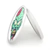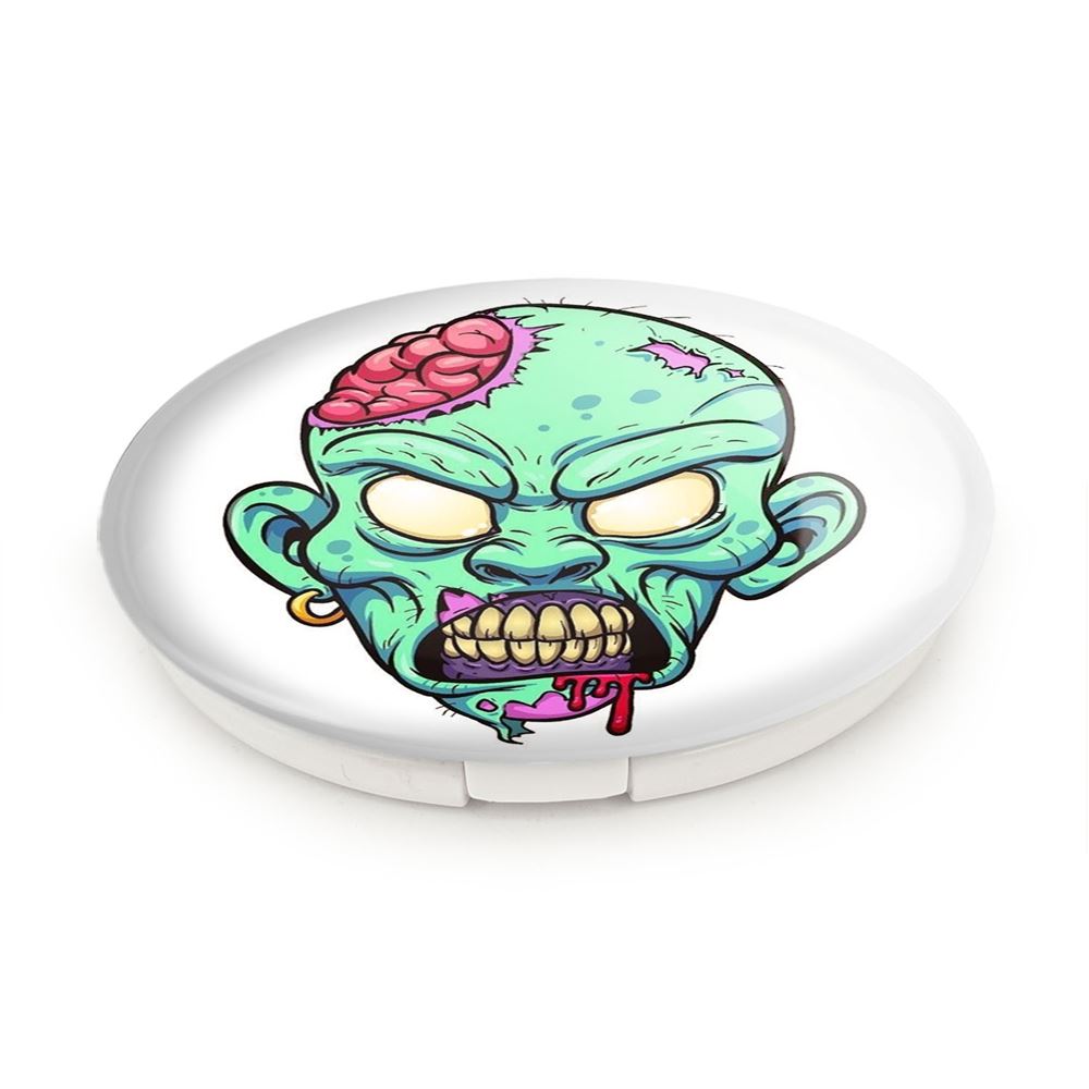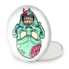 آینه های تاشو اسکلت خندالو، از جنس پلاستیک فشرده ABS تولید شده و به رنگ سفید می باشد. یکی از آینه ها ابعاد واقعی را نشان داده و دیگری با قابلیت بزرگنمایی، جزئیات را بهتر نمایش می دهد. ابعاد هر یک از آینه ها، دایره ای به قطر 7.5 سانت می باشد که نه خیلی بزرگ و غیر قابل استفاده در کیف آرایشی ست و نه خیلی کوچک که تصویر خاصی در آن مشاهده نشود. آینه تاشو اسکلت سایزی استاندارد و کارآمد دارد و در هر کیفی جا میگیرد. چاپ طرح بوسیله چاپگرهای دیجیتال شش رنگ با شفافیت و کیفیتی مثال زدنی بر روی یک وجه از بدنه ی آینه انجام گرفته و با روکش لمینت حرارتی پوشیده شده که در مقابل آسیب و خط و خش مقاوم بوده و کیفیت بالایی دارد. درب آینه بوسیله قفل بدنه ی آن، باز نمی ماند و کاملا بسته می شود و مناسب قرار گیری در کیف لوازم آرایش و کیف های کوچک دستی نیز هست. آینه های تاشو اسکلت خندالو با تنوع طرحی بسیار بالا، سلیقه هر نوع مخاطبی را تامین میکند.