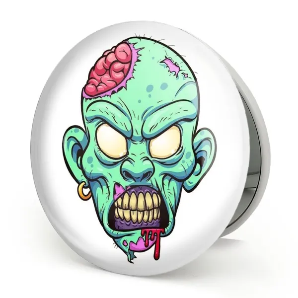 آینه های تاشو اسکلت خندالو، از جنس پلاستیک فشرده ABS تولید شده و به رنگ سفید می باشد. یکی از آینه ها ابعاد واقعی را نشان داده و دیگری با قابلیت بزرگنمایی، جزئیات را بهتر نمایش می دهد. ابعاد هر یک از آینه ها، دایره ای به قطر 7.5 سانت می باشد که نه خیلی بزرگ و غیر قابل استفاده در کیف آرایشی ست و نه خیلی کوچک که تصویر خاصی در آن مشاهده نشود. آینه تاشو اسکلت سایزی استاندارد و کارآمد دارد و در هر کیفی جا میگیرد. چاپ طرح بوسیله چاپگرهای دیجیتال شش رنگ با شفافیت و کیفیتی مثال زدنی بر روی یک وجه از بدنه ی آینه انجام گرفته و با روکش لمینت حرارتی پوشیده شده که در مقابل آسیب و خط و خش مقاوم بوده و کیفیت بالایی دارد. درب آینه بوسیله قفل بدنه ی آن، باز نمی ماند و کاملا بسته می شود و مناسب قرار گیری در کیف لوازم آرایش و کیف های کوچک دستی نیز هست. آینه های تاشو اسکلت خندالو با تنوع طرحی بسیار بالا، سلیقه هر نوع مخاطبی را تامین میکند.
