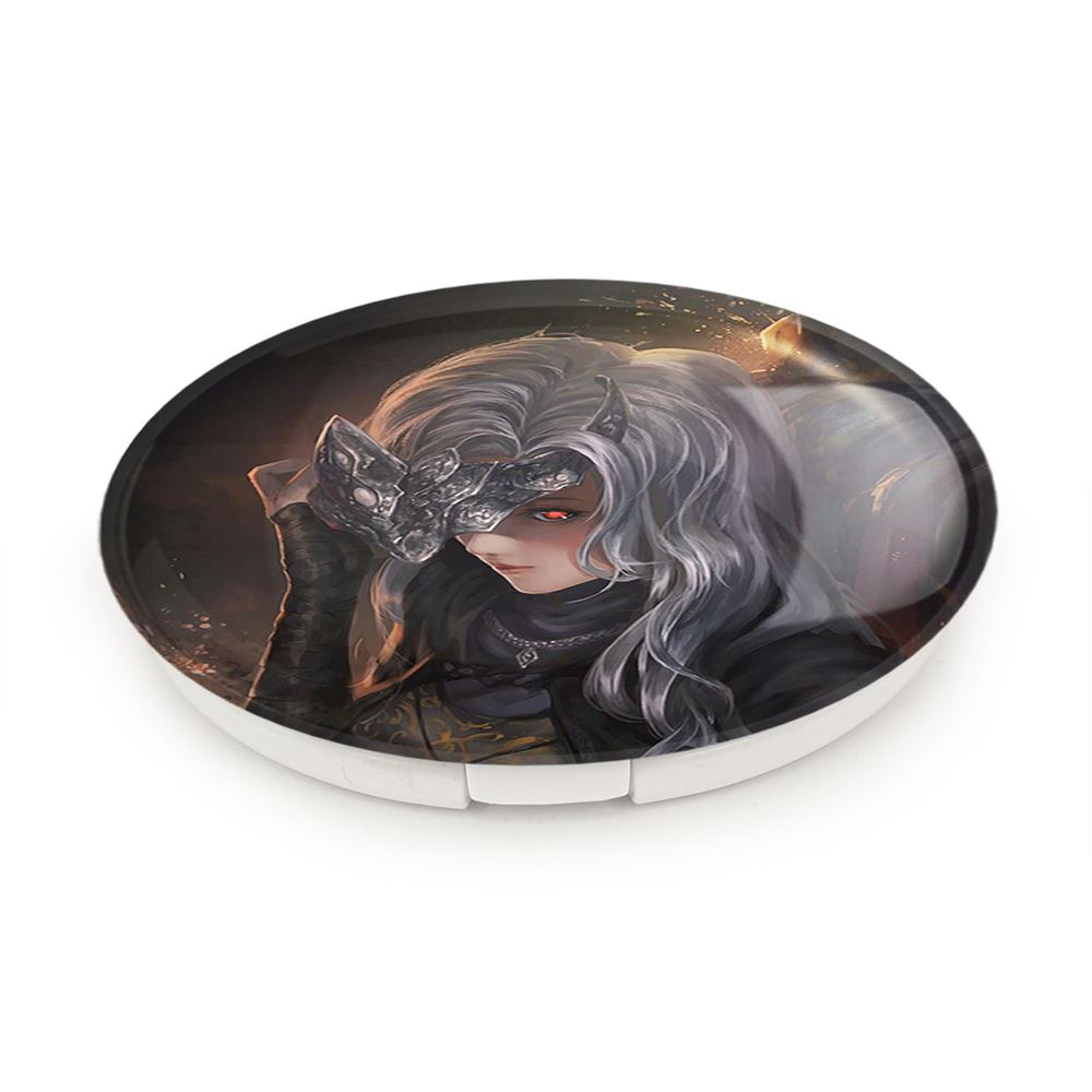 آینه های تاشو اشن وان و فایر کیپر دارک سولز خندالو، از جنس پلاستیک فشرده ABS تولید شده و به رنگ سفید می باشد. یکی از آینه ها ابعاد واقعی را نشان داده و دیگری با قابلیت بزرگنمایی، جزئیات را بهتر نمایش می دهد. ابعاد هر یک از آینه ها، دایره ای به قطر 7.5 سانت می باشد که نه خیلی بزرگ و غیر قابل استفاده در کیف آرایشی ست و نه خیلی کوچک که تصویر خاصی در آن مشاهده نشود. آینه تاشو اشن وان و فایر کیپر دارک سولز سایزی استاندارد و کارآمد دارد و در هر کیفی جا میگیرد. چاپ طرح بوسیله چاپگرهای دیجیتال شش رنگ با شفافیت و کیفیتی مثال زدنی بر روی یک وجه از بدنه ی آینه انجام گرفته و با روکش لمینت حرارتی پوشیده شده که در مقابل آسیب و خط و خش مقاوم بوده و کیفیت بالایی دارد. درب آینه بوسیله قفل بدنه ی آن، باز نمی ماند و کاملا بسته می شود و مناسب قرار گیری در کیف لوازم آرایش و کیف های کوچک دستی نیز هست. آینه های تاشو اشن وان و فایر کیپر دارک سولز خندالو با تنوع طرحی بسیار بالا، سلیقه هر نوع مخاطبی را تامین میکند.