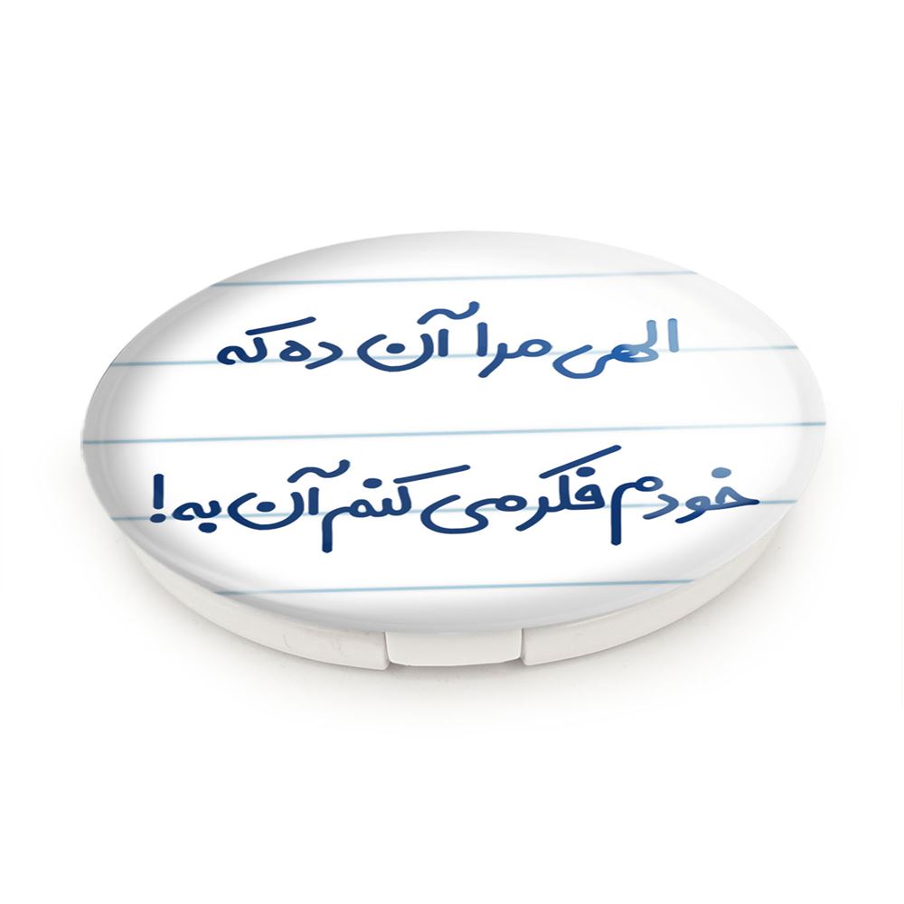 آینه های تاشو الهی مرا آن ده که خودم فکر می کنم آن به خندالو، از جنس پلاستیک فشرده ABS تولید شده و به رنگ سفید می باشد. یکی از آینه ها ابعاد واقعی را نشان داده و دیگری با قابلیت بزرگنمایی، جزئیات را بهتر نمایش می دهد. ابعاد هر یک از آینه ها، دایره ای به قطر 7.5 سانت می باشد که نه خیلی بزرگ و غیر قابل استفاده در کیف آرایشی ست و نه خیلی کوچک که تصویر خاصی در آن مشاهده نشود. آینه تاشو الهی مرا آن ده که خودم فکر می کنم آن به سایزی استاندارد و کارآمد دارد و در هر کیفی جا میگیرد. چاپ طرح بوسیله چاپگرهای دیجیتال شش رنگ با شفافیت و کیفیتی مثال زدنی بر روی یک وجه از بدنه ی آینه انجام گرفته و با روکش لمینت حرارتی پوشیده شده که در مقابل آسیب و خط و خش مقاوم بوده و کیفیت بالایی دارد. درب آینه بوسیله قفل بدنه ی آن، باز نمی ماند و کاملا بسته می شود و مناسب قرار گیری در کیف لوازم آرایش و کیف های کوچک دستی نیز هست. آینه های تاشو الهی مرا آن ده که خودم فکر می کنم آن به خندالو با تنوع طرحی بسیار بالا، سلیقه هر نوع مخاطبی را تامین میکند.