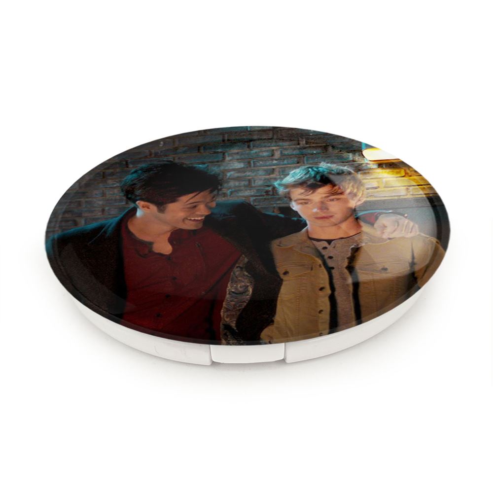 آینه های تاشو الکس و زک 13دلیل برای اینکه Reasons Why13 خندالو، از جنس پلاستیک فشرده ABS تولید شده و به رنگ سفید می باشد. یکی از آینه ها ابعاد واقعی را نشان داده و دیگری با قابلیت بزرگنمایی، جزئیات را بهتر نمایش می دهد. ابعاد هر یک از آینه ها، دایره ای به قطر 7.5 سانت می باشد که نه خیلی بزرگ و غیر قابل استفاده در کیف آرایشی ست و نه خیلی کوچک که تصویر خاصی در آن مشاهده نشود. آینه تاشو الکس و زک 13دلیل برای اینکه Reasons Why13 سایزی استاندارد و کارآمد دارد و در هر کیفی جا میگیرد. چاپ طرح بوسیله چاپگرهای دیجیتال شش رنگ با شفافیت و کیفیتی مثال زدنی بر روی یک وجه از بدنه ی آینه انجام گرفته و با روکش لمینت حرارتی پوشیده شده که در مقابل آسیب و خط و خش مقاوم بوده و کیفیت بالایی دارد. درب آینه بوسیله قفل بدنه ی آن، باز نمی ماند و کاملا بسته می شود و مناسب قرار گیری در کیف لوازم آرایش و کیف های کوچک دستی نیز هست. آینه های تاشو الکس و زک 13دلیل برای اینکه Reasons Why13 خندالو با تنوع طرحی بسیار بالا، سلیقه هر نوع مخاطبی را تامین میکند.