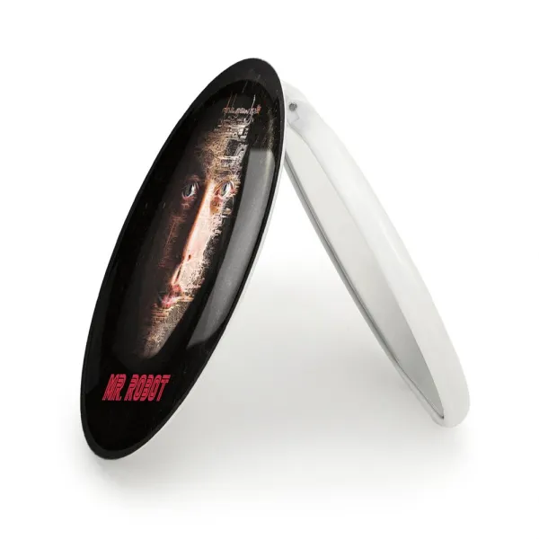 آینه های تاشو الیوت الدرسون سریال آقای ربات Mr.Robot خندالو، از جنس پلاستیک فشرده ABS تولید شده و به رنگ سفید می باشد. یکی از آینه ها ابعاد واقعی را نشان داده و دیگری با قابلیت بزرگنمایی، جزئیات را بهتر نمایش می دهد.