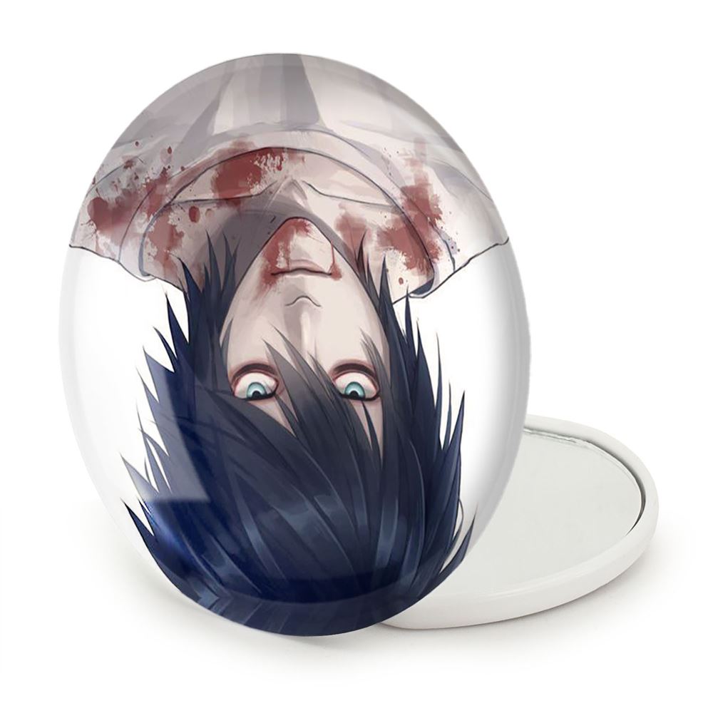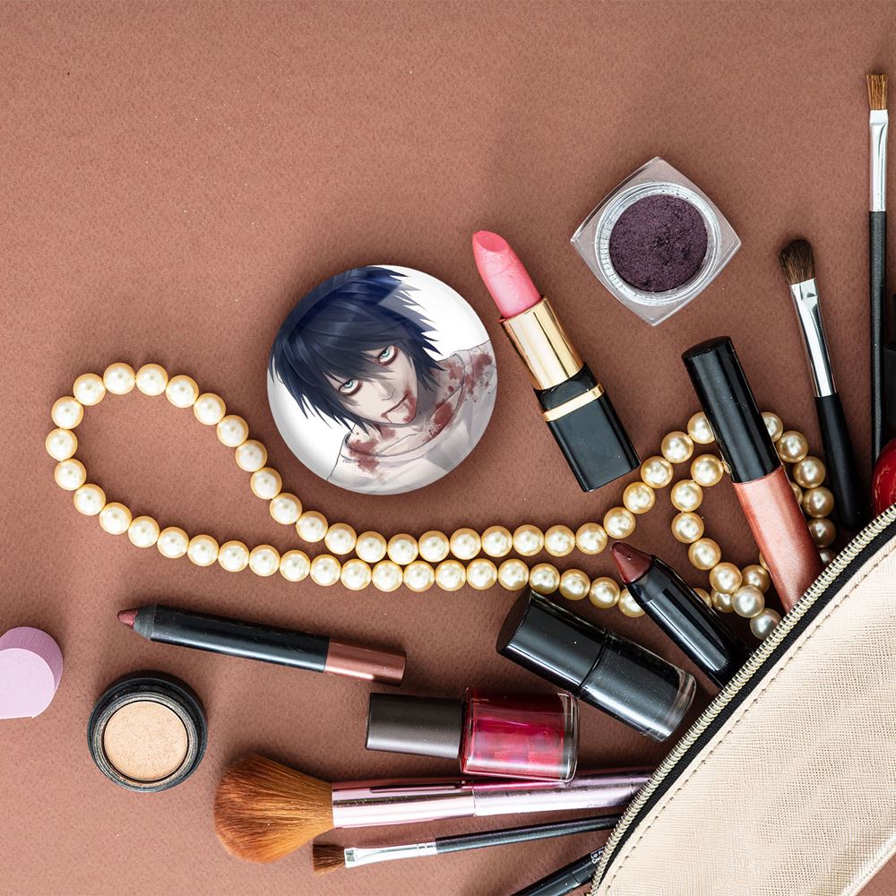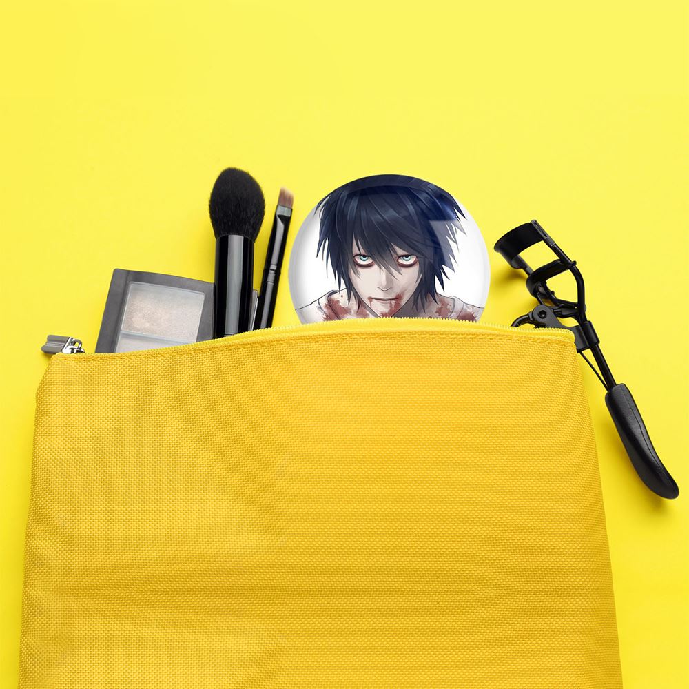 آینه های تاشو ال انیمه دفترچه مرگ Death Note خندالو، از جنس پلاستیک فشرده ABS تولید شده و به رنگ سفید می باشد. یکی از آینه ها ابعاد واقعی را نشان داده و دیگری با قابلیت بزرگنمایی، جزئیات را بهتر نمایش می دهد. ابعاد هر یک از آینه ها، دایره ای به قطر 7.5 سانت می باشد که نه خیلی بزرگ و غیر قابل استفاده در کیف آرایشی ست و نه خیلی کوچک که تصویر خاصی در آن مشاهده نشود. آینه تاشو ال انیمه دفترچه مرگ Death Note سایزی استاندارد و کارآمد دارد و در هر کیفی جا میگیرد. چاپ طرح بوسیله چاپگرهای دیجیتال شش رنگ با شفافیت و کیفیتی مثال زدنی بر روی یک وجه از بدنه ی آینه انجام گرفته و با روکش لمینت حرارتی پوشیده شده که در مقابل آسیب و خط و خش مقاوم بوده و کیفیت بالایی دارد. درب آینه بوسیله قفل بدنه ی آن، باز نمی ماند و کاملا بسته می شود و مناسب قرار گیری در کیف لوازم آرایش و کیف های کوچک دستی نیز هست. آینه های تاشو ال انیمه دفترچه مرگ Death Note خندالو با تنوع طرحی بسیار بالا، سلیقه هر نوع مخاطبی را تامین میکند.