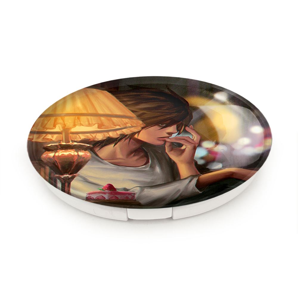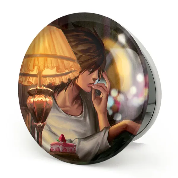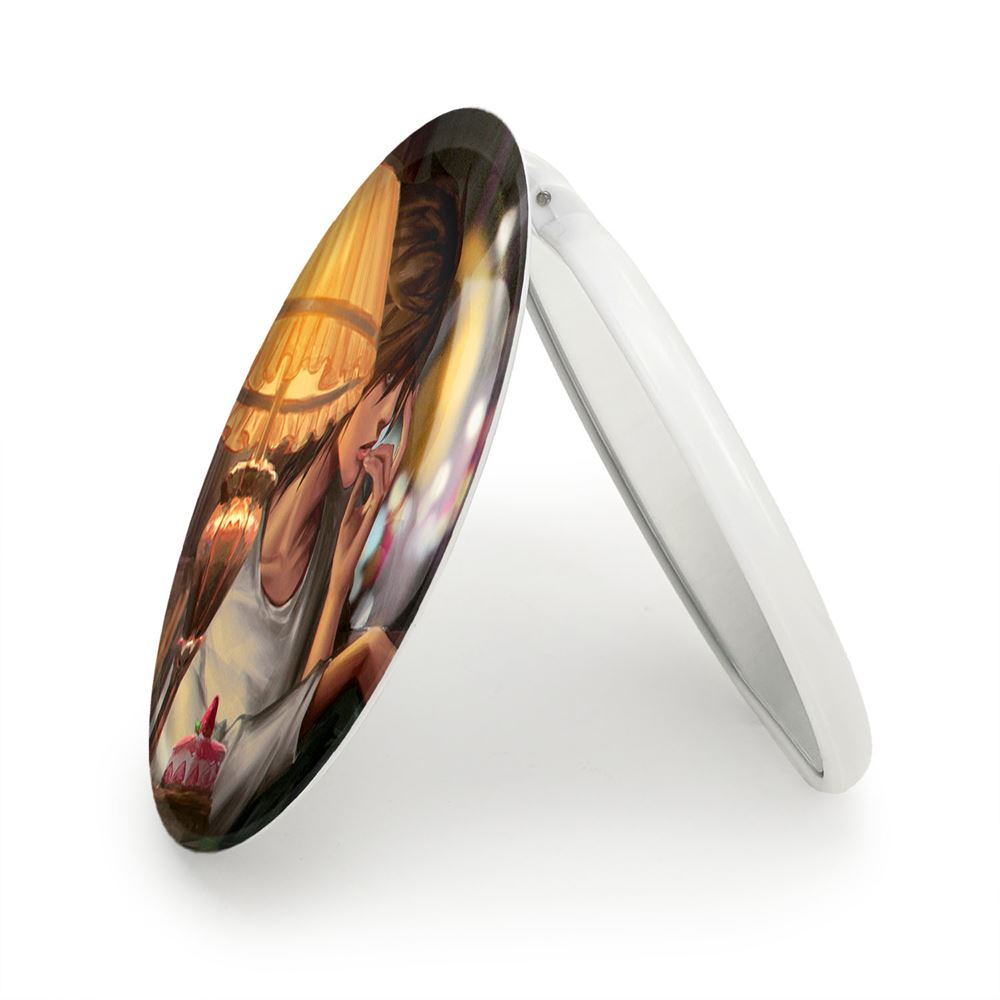 آینه های تاشو ال لاولیت انیمه دفترچه مرگ Death Note خندالو، از جنس پلاستیک فشرده ABS تولید شده و به رنگ سفید می باشد. یکی از آینه ها ابعاد واقعی را نشان داده و دیگری با قابلیت بزرگنمایی، جزئیات را بهتر نمایش می دهد. ابعاد هر یک از آینه ها، دایره ای به قطر 7.5 سانت می باشد که نه خیلی بزرگ و غیر قابل استفاده در کیف آرایشی ست و نه خیلی کوچک که تصویر خاصی در آن مشاهده نشود. آینه تاشو ال لاولیت انیمه دفترچه مرگ Death Note سایزی استاندارد و کارآمد دارد و در هر کیفی جا میگیرد. چاپ طرح بوسیله چاپگرهای دیجیتال شش رنگ با شفافیت و کیفیتی مثال زدنی بر روی یک وجه از بدنه ی آینه انجام گرفته و با روکش لمینت حرارتی پوشیده شده که در مقابل آسیب و خط و خش مقاوم بوده و کیفیت بالایی دارد. درب آینه بوسیله قفل بدنه ی آن، باز نمی ماند و کاملا بسته می شود و مناسب قرار گیری در کیف لوازم آرایش و کیف های کوچک دستی نیز هست. آینه های تاشو ال لاولیت انیمه دفترچه مرگ Death Note خندالو با تنوع طرحی بسیار بالا، سلیقه هر نوع مخاطبی را تامین میکند.