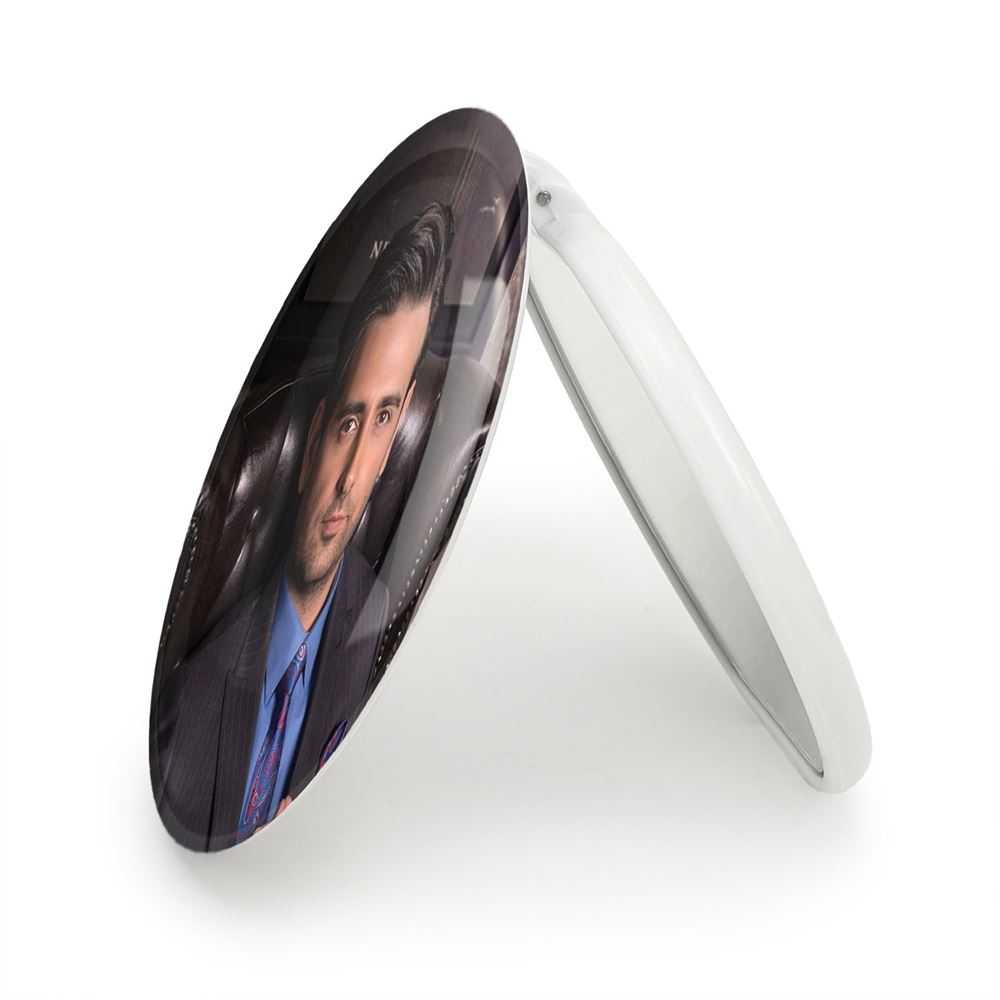 آینه های تاشو امیرحسین آرمان خندالو، از جنس پلاستیک فشرده ABS تولید شده و به رنگ سفید می باشد. یکی از آینه ها ابعاد واقعی را نشان داده و دیگری با قابلیت بزرگنمایی، جزئیات را بهتر نمایش می دهد. ابعاد هر یک از آینه ها، دایره ای به قطر 7.5 سانت می باشد که نه خیلی بزرگ و غیر قابل استفاده در کیف آرایشی ست و نه خیلی کوچک که تصویر خاصی در آن مشاهده نشود. آینه تاشو امیرحسین آرمان سایزی استاندارد و کارآمد دارد و در هر کیفی جا میگیرد. چاپ طرح بوسیله چاپگرهای دیجیتال شش رنگ با شفافیت و کیفیتی مثال زدنی بر روی یک وجه از بدنه ی آینه انجام گرفته و با روکش لمینت حرارتی پوشیده شده که در مقابل آسیب و خط و خش مقاوم بوده و کیفیت بالایی دارد. درب آینه بوسیله قفل بدنه ی آن، باز نمی ماند و کاملا بسته می شود و مناسب قرار گیری در کیف لوازم آرایش و کیف های کوچک دستی نیز هست. آینه های تاشو امیرحسین آرمان خندالو با تنوع طرحی بسیار بالا، سلیقه هر نوع مخاطبی را تامین میکند.