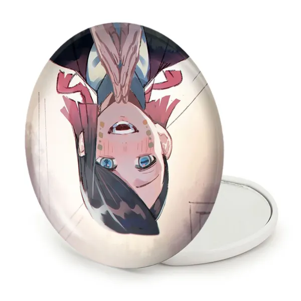 آینه های تاشو انمو انیمه شیطان کش خندالو، از جنس پلاستیک فشرده ABS تولید شده و به رنگ سفید می باشد. یکی از آینه ها ابعاد واقعی را نشان داده و دیگری با قابلیت بزرگنمایی، جزئیات را بهتر نمایش می دهد. ابعاد هر یک از آینه ها، دایره ای به قطر 7.5 سانت می باشد که نه خیلی بزرگ و غیر قابل استفاده در کیف آرایشی ست و نه خیلی کوچک که تصویر خاصی در آن مشاهده نشود. آینه تاشو انمو انیمه شیطان کش سایزی استاندارد و کارآمد دارد و در هر کیفی جا میگیرد. چاپ طرح بوسیله چاپگرهای دیجیتال شش رنگ با شفافیت و کیفیتی مثال زدنی بر روی یک وجه از بدنه ی آینه انجام گرفته و با روکش لمینت حرارتی پوشیده شده که در مقابل آسیب و خط و خش مقاوم بوده و کیفیت بالایی دارد. درب آینه بوسیله قفل بدنه ی آن، باز نمی ماند و کاملا بسته می شود و مناسب قرار گیری در کیف لوازم آرایش و کیف های کوچک دستی نیز هست. آینه های تاشو انمو انیمه شیطان کش خندالو با تنوع طرحی بسیار بالا، سلیقه هر نوع مخاطبی را تامین میکند.