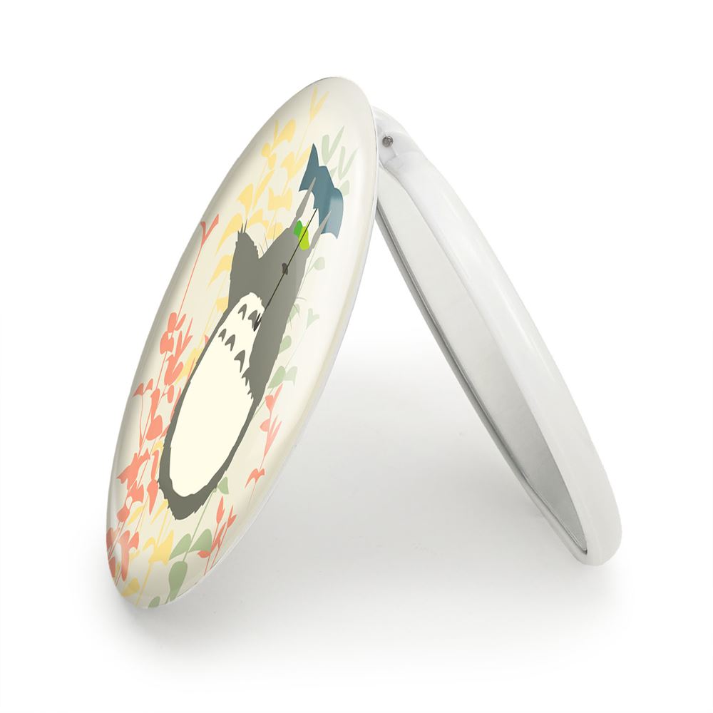 آینه های تاشو انیمه توتورو Totoro خندالو، از جنس پلاستیک فشرده ABS تولید شده و به رنگ سفید می باشد. یکی از آینه ها ابعاد واقعی را نشان داده و دیگری با قابلیت بزرگنمایی، جزئیات را بهتر نمایش می دهد. ابعاد هر یک از آینه ها، دایره ای به قطر 7.5 سانت می باشد که نه خیلی بزرگ و غیر قابل استفاده در کیف آرایشی ست و نه خیلی کوچک که تصویر خاصی در آن مشاهده نشود. آینه تاشو انیمه توتورو Totoro سایزی استاندارد و کارآمد دارد و در هر کیفی جا میگیرد. چاپ طرح بوسیله چاپگرهای دیجیتال شش رنگ با شفافیت و کیفیتی مثال زدنی بر روی یک وجه از بدنه ی آینه انجام گرفته و با روکش لمینت حرارتی پوشیده شده که در مقابل آسیب و خط و خش مقاوم بوده و کیفیت بالایی دارد. درب آینه بوسیله قفل بدنه ی آن، باز نمی ماند و کاملا بسته می شود و مناسب قرار گیری در کیف لوازم آرایش و کیف های کوچک دستی نیز هست. آینه های تاشو انیمه توتورو Totoro خندالو با تنوع طرحی بسیار بالا، سلیقه هر نوع مخاطبی را تامین میکند.