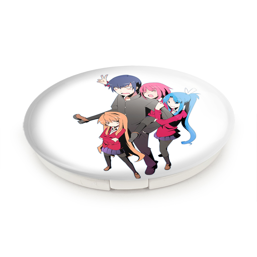 آینه های تاشو انیمه تورادورا خندالو، از جنس پلاستیک فشرده ABS تولید شده و به رنگ سفید می باشد. یکی از آینه ها ابعاد واقعی را نشان داده و دیگری با قابلیت بزرگنمایی، جزئیات را بهتر نمایش می دهد. ابعاد هر یک از آینه ها، دایره ای به قطر 7.5 سانت می باشد که نه خیلی بزرگ و غیر قابل استفاده در کیف آرایشی ست و نه خیلی کوچک که تصویر خاصی در آن مشاهده نشود. آینه تاشو انیمه تورادورا سایزی استاندارد و کارآمد دارد و در هر کیفی جا میگیرد. چاپ طرح بوسیله چاپگرهای دیجیتال شش رنگ با شفافیت و کیفیتی مثال زدنی بر روی یک وجه از بدنه ی آینه انجام گرفته و با روکش لمینت حرارتی پوشیده شده که در مقابل آسیب و خط و خش مقاوم بوده و کیفیت بالایی دارد. درب آینه بوسیله قفل بدنه ی آن، باز نمی ماند و کاملا بسته می شود و مناسب قرار گیری در کیف لوازم آرایش و کیف های کوچک دستی نیز هست. آینه های تاشو انیمه تورادورا خندالو با تنوع طرحی بسیار بالا، سلیقه هر نوع مخاطبی را تامین میکند.