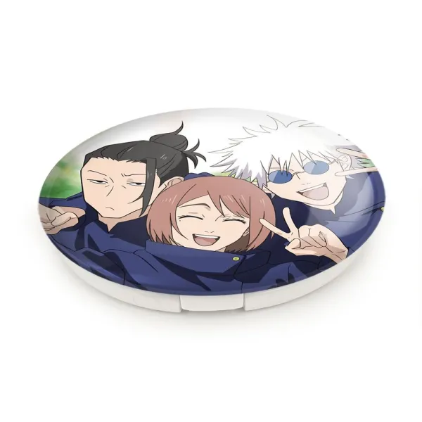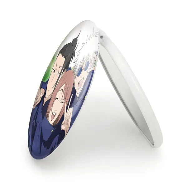 آینه های تاشو انیمه جوجوتسو کایزن Jujutsu Kaisen خندالو، از جنس پلاستیک فشرده ABS تولید شده و به رنگ سفید می باشد. یکی از آینه ها ابعاد واقعی را نشان داده و دیگری با قابلیت بزرگنمایی، جزئیات را بهتر نمایش می دهد. ابعاد هر یک از آینه ها، دایره ای به قطر 7.5 سانت می باشد که نه خیلی بزرگ و غیر قابل استفاده در کیف آرایشی ست و نه خیلی کوچک که تصویر خاصی در آن مشاهده نشود. آینه تاشو انیمه جوجوتسو کایزن Jujutsu Kaisen سایزی استاندارد و کارآمد دارد و در هر کیفی جا میگیرد. چاپ طرح بوسیله چاپگرهای دیجیتال شش رنگ با شفافیت و کیفیتی مثال زدنی بر روی یک وجه از بدنه ی آینه انجام گرفته و با روکش لمینت حرارتی پوشیده شده که در مقابل آسیب و خط و خش مقاوم بوده و کیفیت بالایی دارد. درب آینه بوسیله قفل بدنه ی آن، باز نمی ماند و کاملا بسته می شود و مناسب قرار گیری در کیف لوازم آرایش و کیف های کوچک دستی نیز هست. آینه های تاشو انیمه جوجوتسو کایزن Jujutsu Kaisen خندالو با تنوع طرحی بسیار بالا، سلیقه هر نوع مخاطبی را تامین میکند.