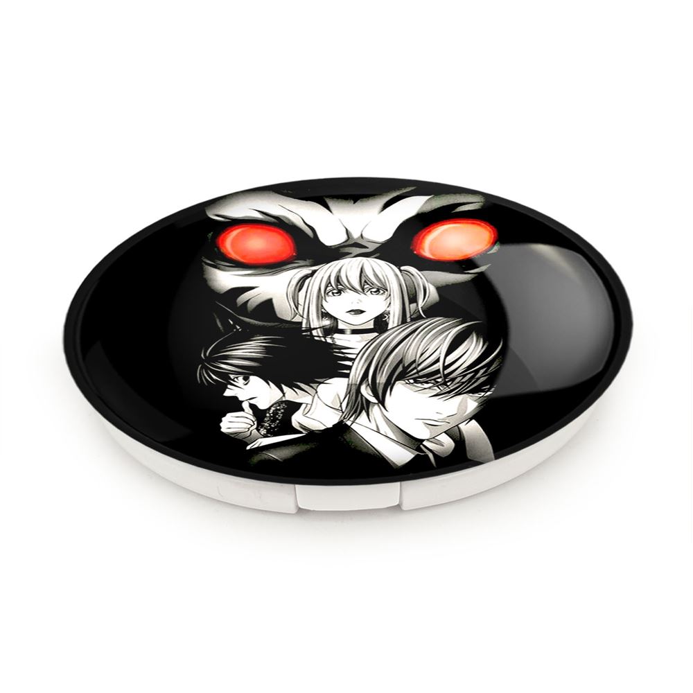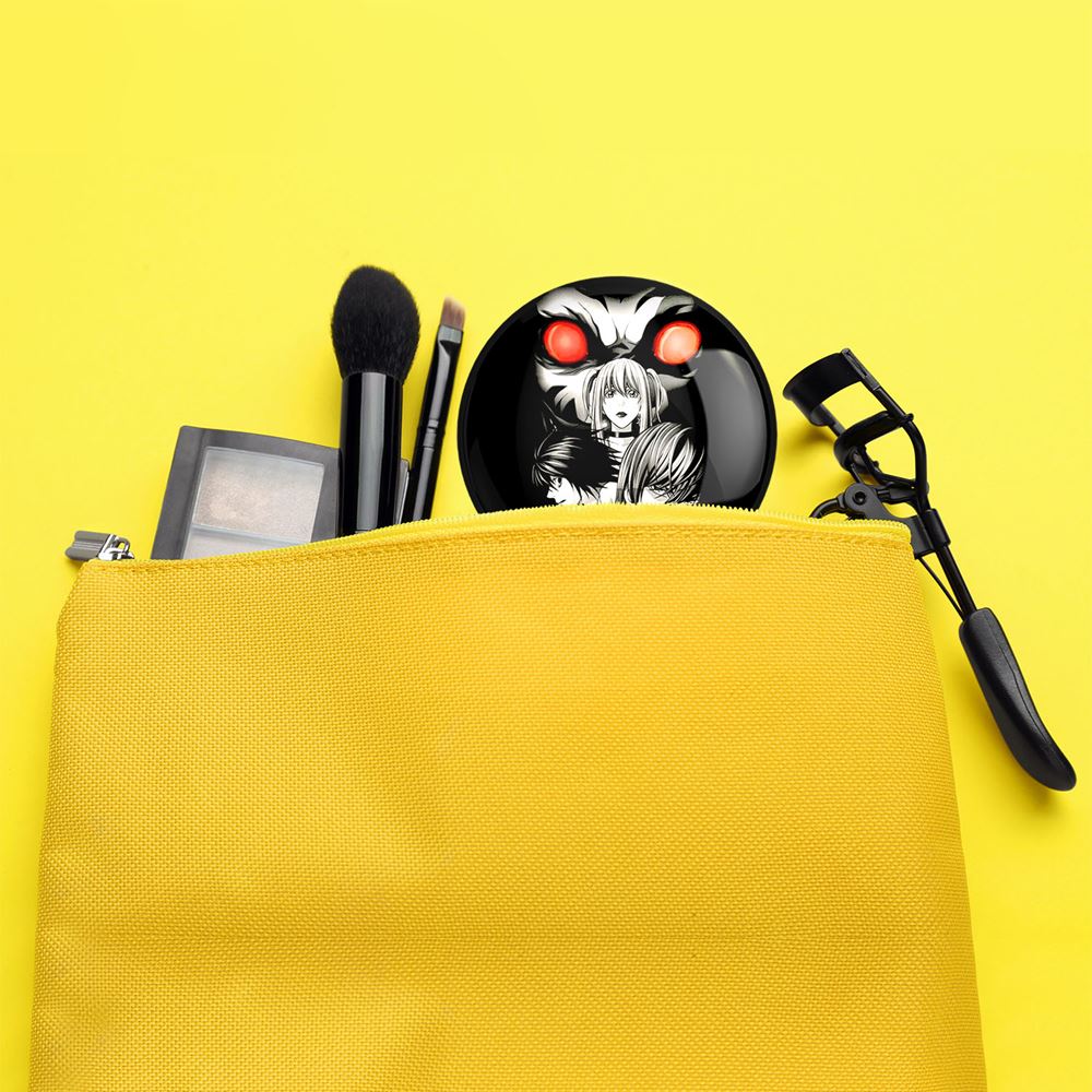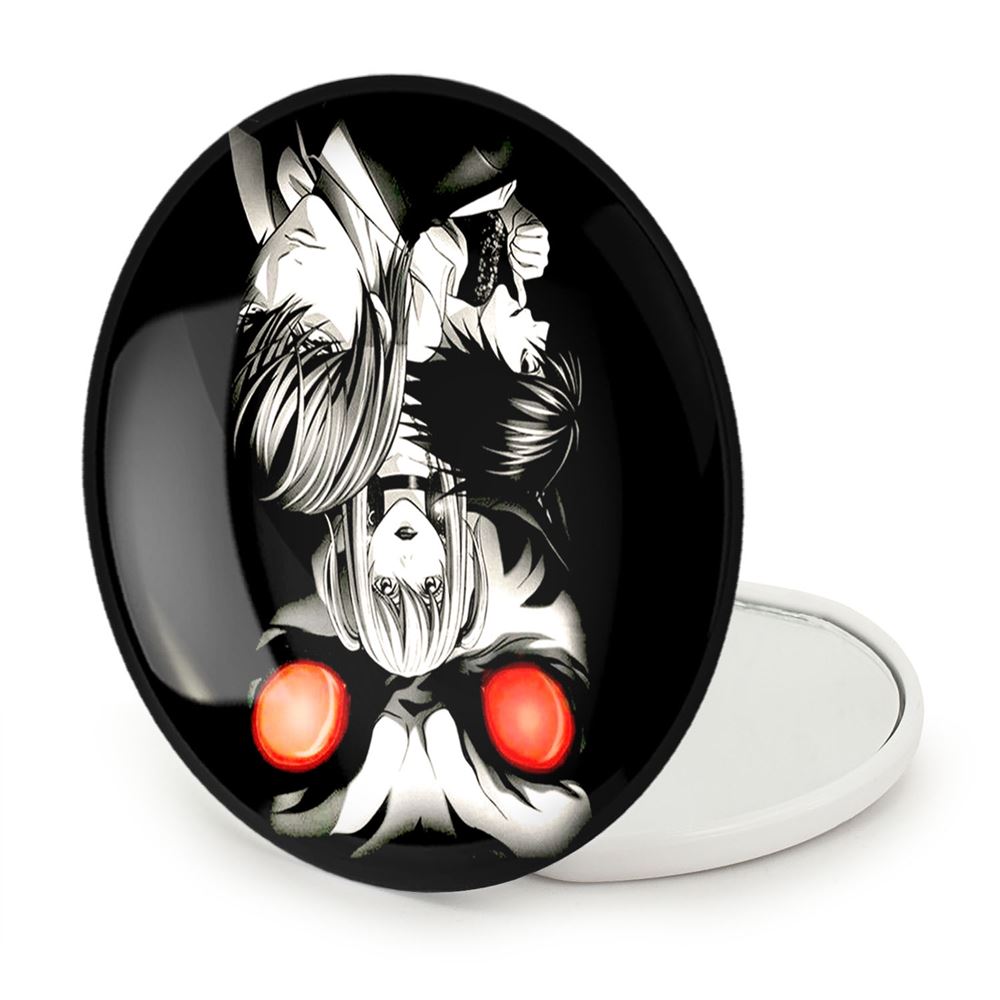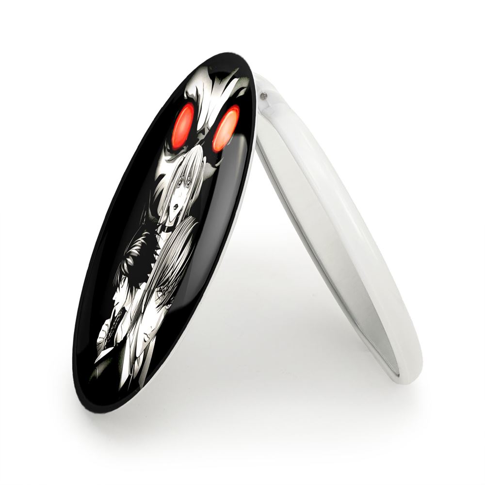 آینه های تاشو انیمه دفترچه مرگ Death Note خندالو، از جنس پلاستیک فشرده ABS تولید شده و به رنگ سفید می باشد. یکی از آینه ها ابعاد واقعی را نشان داده و دیگری با قابلیت بزرگنمایی، جزئیات را بهتر نمایش می دهد. ابعاد هر یک از آینه ها، دایره ای به قطر 7.5 سانت می باشد که نه خیلی بزرگ و غیر قابل استفاده در کیف آرایشی ست و نه خیلی کوچک که تصویر خاصی در آن مشاهده نشود. آینه تاشو انیمه دفترچه مرگ Death Note سایزی استاندارد و کارآمد دارد و در هر کیفی جا میگیرد. چاپ طرح بوسیله چاپگرهای دیجیتال شش رنگ با شفافیت و کیفیتی مثال زدنی بر روی یک وجه از بدنه ی آینه انجام گرفته و با روکش لمینت حرارتی پوشیده شده که در مقابل آسیب و خط و خش مقاوم بوده و کیفیت بالایی دارد. درب آینه بوسیله قفل بدنه ی آن، باز نمی ماند و کاملا بسته می شود و مناسب قرار گیری در کیف لوازم آرایش و کیف های کوچک دستی نیز هست. آینه های تاشو انیمه دفترچه مرگ Death Note خندالو با تنوع طرحی بسیار بالا، سلیقه هر نوع مخاطبی را تامین میکند.