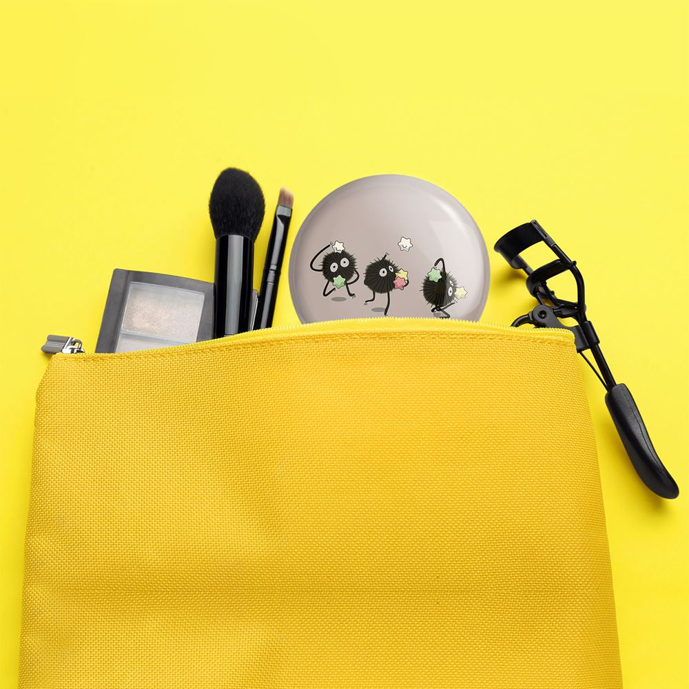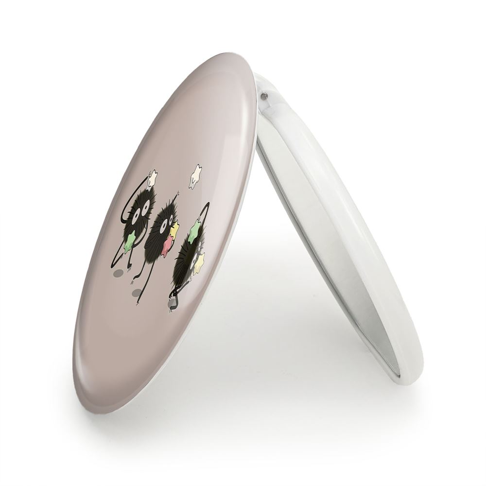 آینه های تاشو انیمه شهر اشباح Spirited Away خندالو، از جنس پلاستیک فشرده ABS تولید شده و به رنگ سفید می باشد. یکی از آینه ها ابعاد واقعی را نشان داده و دیگری با قابلیت بزرگنمایی، جزئیات را بهتر نمایش می دهد. ابعاد هر یک از آینه ها، دایره ای به قطر 7.5 سانت می باشد که نه خیلی بزرگ و غیر قابل استفاده در کیف آرایشی ست و نه خیلی کوچک که تصویر خاصی در آن مشاهده نشود. آینه تاشو انیمه شهر اشباح Spirited Away سایزی استاندارد و کارآمد دارد و در هر کیفی جا میگیرد. چاپ طرح بوسیله چاپگرهای دیجیتال شش رنگ با شفافیت و کیفیتی مثال زدنی بر روی یک وجه از بدنه ی آینه انجام گرفته و با روکش لمینت حرارتی پوشیده شده که در مقابل آسیب و خط و خش مقاوم بوده و کیفیت بالایی دارد. درب آینه بوسیله قفل بدنه ی آن، باز نمی ماند و کاملا بسته می شود و مناسب قرار گیری در کیف لوازم آرایش و کیف های کوچک دستی نیز هست. آینه های تاشو انیمه شهر اشباح Spirited Away خندالو با تنوع طرحی بسیار بالا، سلیقه هر نوع مخاطبی را تامین میکند.
