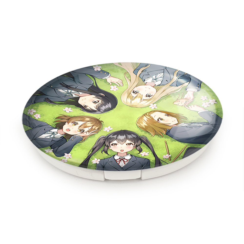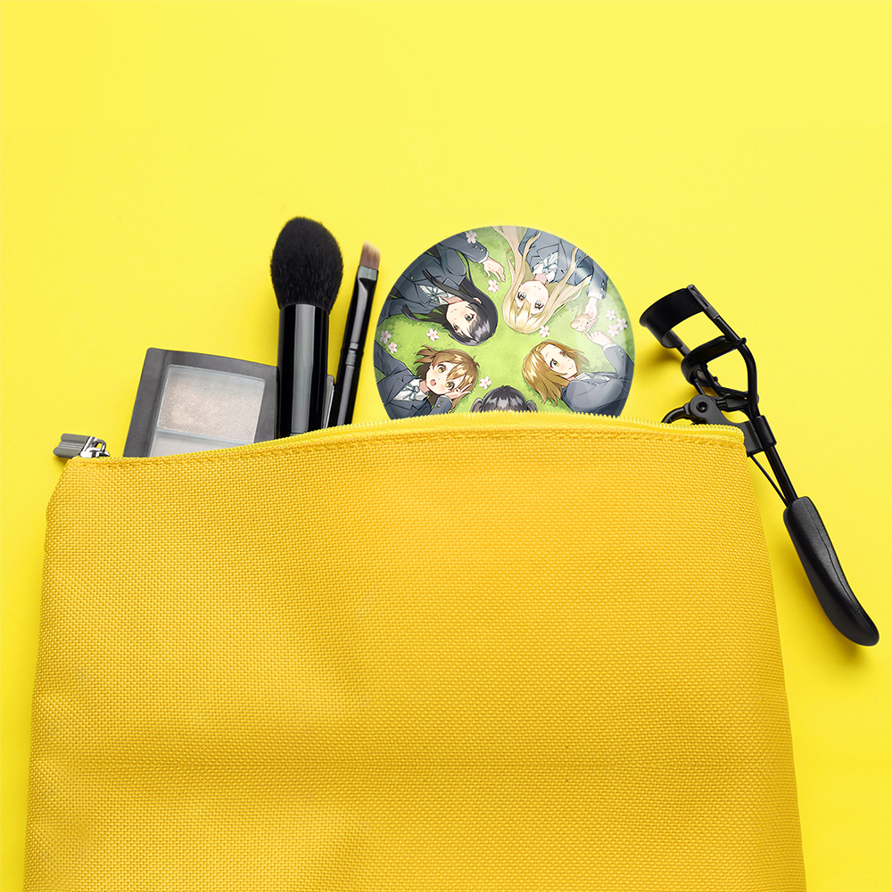 آینه های تاشو انیمه كي اون (K On) خندالو، از جنس پلاستیک فشرده ABS تولید شده و به رنگ سفید می باشد. یکی از آینه ها ابعاد واقعی را نشان داده و دیگری با قابلیت بزرگنمایی، جزئیات را بهتر نمایش می دهد. ابعاد هر یک از آینه ها، دایره ای به قطر 7.5 سانت می باشد که نه خیلی بزرگ و غیر قابل استفاده در کیف آرایشی ست و نه خیلی کوچک که تصویر خاصی در آن مشاهده نشود. آینه تاشو انیمه كي اون (K On) سایزی استاندارد و کارآمد دارد و در هر کیفی جا میگیرد. چاپ طرح بوسیله چاپگرهای دیجیتال شش رنگ با شفافیت و کیفیتی مثال زدنی بر روی یک وجه از بدنه ی آینه انجام گرفته و با روکش لمینت حرارتی پوشیده شده که در مقابل آسیب و خط و خش مقاوم بوده و کیفیت بالایی دارد. درب آینه بوسیله قفل بدنه ی آن، باز نمی ماند و کاملا بسته می شود و مناسب قرار گیری در کیف لوازم آرایش و کیف های کوچک دستی نیز هست. آینه های تاشو انیمه كي اون (K On) خندالو با تنوع طرحی بسیار بالا، سلیقه هر نوع مخاطبی را تامین میکند.