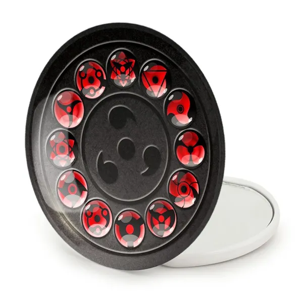 آینه های تاشو انیمه ناروتو شارینگان خندالو، از جنس پلاستیک فشرده ABS تولید شده و به رنگ سفید می باشد. یکی از آینه ها ابعاد واقعی را نشان داده و دیگری با قابلیت بزرگنمایی، جزئیات را بهتر نمایش می دهد. ابعاد هر یک از آینه ها، دایره ای به قطر 7.5 سانت می باشد که نه خیلی بزرگ و غیر قابل استفاده در کیف آرایشی ست و نه خیلی کوچک که تصویر خاصی در آن مشاهده نشود. آینه تاشو انیمه ناروتو شارینگان سایزی استاندارد و کارآمد دارد و در هر کیفی جا میگیرد. چاپ طرح بوسیله چاپگرهای دیجیتال شش رنگ با شفافیت و کیفیتی مثال زدنی بر روی یک وجه از بدنه ی آینه انجام گرفته و با روکش لمینت حرارتی پوشیده شده که در مقابل آسیب و خط و خش مقاوم بوده و کیفیت بالایی دارد. درب آینه بوسیله قفل بدنه ی آن، باز نمی ماند و کاملا بسته می شود و مناسب قرار گیری در کیف لوازم آرایش و کیف های کوچک دستی نیز هست. آینه های تاشو انیمه ناروتو شارینگان خندالو با تنوع طرحی بسیار بالا، سلیقه هر نوع مخاطبی را تامین میکند.