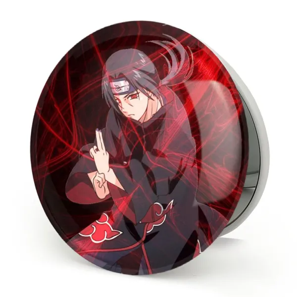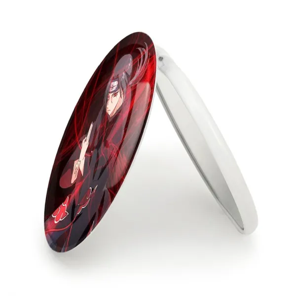 آینه های تاشو انیمه ناروتو شارینگان خندالو، از جنس پلاستیک فشرده ABS تولید شده و به رنگ سفید می باشد. یکی از آینه ها ابعاد واقعی را نشان داده و دیگری با قابلیت بزرگنمایی، جزئیات را بهتر نمایش می دهد. ابعاد هر یک از آینه ها، دایره ای به قطر 7.5 سانت می باشد که نه خیلی بزرگ و غیر قابل استفاده در کیف آرایشی ست و نه خیلی کوچک که تصویر خاصی در آن مشاهده نشود. آینه تاشو انیمه ناروتو شارینگان سایزی استاندارد و کارآمد دارد و در هر کیفی جا میگیرد. چاپ طرح بوسیله چاپگرهای دیجیتال شش رنگ با شفافیت و کیفیتی مثال زدنی بر روی یک وجه از بدنه ی آینه انجام گرفته و با روکش لمینت حرارتی پوشیده شده که در مقابل آسیب و خط و خش مقاوم بوده و کیفیت بالایی دارد. درب آینه بوسیله قفل بدنه ی آن، باز نمی ماند و کاملا بسته می شود و مناسب قرار گیری در کیف لوازم آرایش و کیف های کوچک دستی نیز هست. آینه های تاشو انیمه ناروتو شارینگان خندالو با تنوع طرحی بسیار بالا، سلیقه هر نوع مخاطبی را تامین میکند.