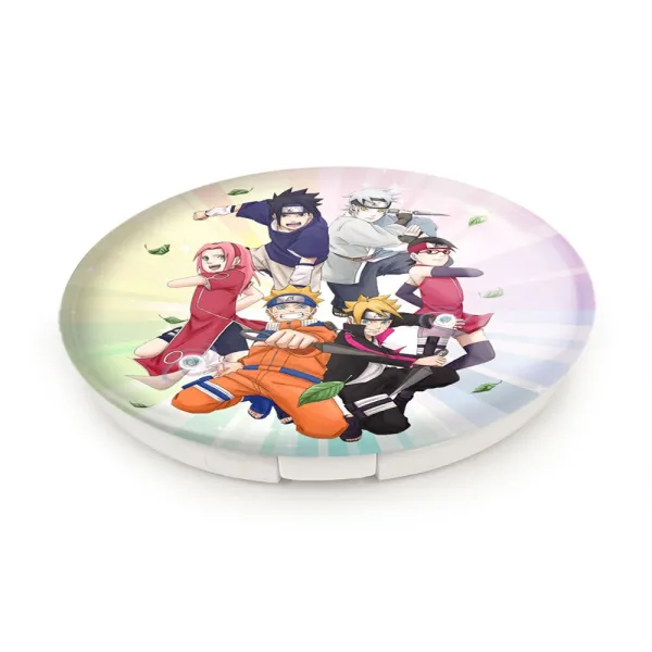 آینه های تاشو انیمه ناروتو Naruto خندالو، از جنس پلاستیک فشرده ABS تولید شده و به رنگ سفید می باشد. یکی از آینه ها ابعاد واقعی را نشان داده و دیگری با قابلیت بزرگنمایی، جزئیات را بهتر نمایش می دهد. ابعاد هر یک از آینه ها، دایره ای به قطر 7.5 سانت می باشد که نه خیلی بزرگ و غیر قابل استفاده در کیف آرایشی ست و نه خیلی کوچک که تصویر خاصی در آن مشاهده نشود. آینه تاشو انیمه ناروتو Naruto سایزی استاندارد و کارآمد دارد و در هر کیفی جا میگیرد. چاپ طرح بوسیله چاپگرهای دیجیتال شش رنگ با شفافیت و کیفیتی مثال زدنی بر روی یک وجه از بدنه ی آینه انجام گرفته و با روکش لمینت حرارتی پوشیده شده که در مقابل آسیب و خط و خش مقاوم بوده و کیفیت بالایی دارد. درب آینه بوسیله قفل بدنه ی آن، باز نمی ماند و کاملا بسته می شود و مناسب قرار گیری در کیف لوازم آرایش و کیف های کوچک دستی نیز هست. آینه های تاشو انیمه ناروتو Naruto خندالو با تنوع طرحی بسیار بالا، سلیقه هر نوع مخاطبی را تامین میکند.