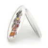 آینه های تاشو انیمه ناروتو Naruto خندالو، از جنس پلاستیک فشرده ABS تولید شده و به رنگ سفید می باشد. یکی از آینه ها ابعاد واقعی را نشان داده و دیگری با قابلیت بزرگنمایی، جزئیات را بهتر نمایش می دهد. ابعاد هر یک از آینه ها، دایره ای به قطر 7.5 سانت می باشد که نه خیلی بزرگ و غیر قابل استفاده در کیف آرایشی ست و نه خیلی کوچک که تصویر خاصی در آن مشاهده نشود. آینه تاشو انیمه ناروتو Naruto سایزی استاندارد و کارآمد دارد و در هر کیفی جا میگیرد. چاپ طرح بوسیله چاپگرهای دیجیتال شش رنگ با شفافیت و کیفیتی مثال زدنی بر روی یک وجه از بدنه ی آینه انجام گرفته و با روکش لمینت حرارتی پوشیده شده که در مقابل آسیب و خط و خش مقاوم بوده و کیفیت بالایی دارد. درب آینه بوسیله قفل بدنه ی آن، باز نمی ماند و کاملا بسته می شود و مناسب قرار گیری در کیف لوازم آرایش و کیف های کوچک دستی نیز هست. آینه های تاشو انیمه ناروتو Naruto خندالو با تنوع طرحی بسیار بالا، سلیقه هر نوع مخاطبی را تامین میکند.