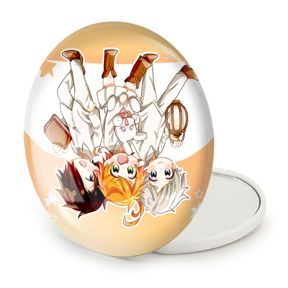 آینه های تاشو انیمه ناکجا آباد موعود Promised Neverland خندالو، از جنس پلاستیک فشرده ABS تولید شده و به رنگ سفید می باشد. یکی از آینه ها ابعاد واقعی را نشان داده و دیگری با قابلیت بزرگنمایی، جزئیات را بهتر نمایش می دهد.