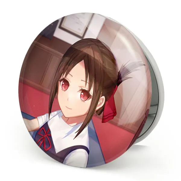 آینه های تاشو انیمه کاگویا ساما خندالو، از جنس پلاستیک فشرده ABS تولید شده و به رنگ سفید می باشد. یکی از آینه ها ابعاد واقعی را نشان داده و دیگری با قابلیت بزرگنمایی، جزئیات را بهتر نمایش می دهد. ابعاد هر یک از آینه ها، دایره ای به قطر 7.5 سانت می باشد که نه خیلی بزرگ و غیر قابل استفاده در کیف آرایشی ست و نه خیلی کوچک که تصویر خاصی در آن مشاهده نشود. آینه تاشو انیمه کاگویا ساما سایزی استاندارد و کارآمد دارد و در هر کیفی جا میگیرد. چاپ طرح بوسیله چاپگرهای دیجیتال شش رنگ با شفافیت و کیفیتی مثال زدنی بر روی یک وجه از بدنه ی آینه انجام گرفته و با روکش لمینت حرارتی پوشیده شده که در مقابل آسیب و خط و خش مقاوم بوده و کیفیت بالایی دارد. درب آینه بوسیله قفل بدنه ی آن، باز نمی ماند و کاملا بسته می شود و مناسب قرار گیری در کیف لوازم آرایش و کیف های کوچک دستی نیز هست. آینه های تاشو انیمه کاگویا ساما خندالو با تنوع طرحی بسیار بالا، سلیقه هر نوع مخاطبی را تامین میکند.