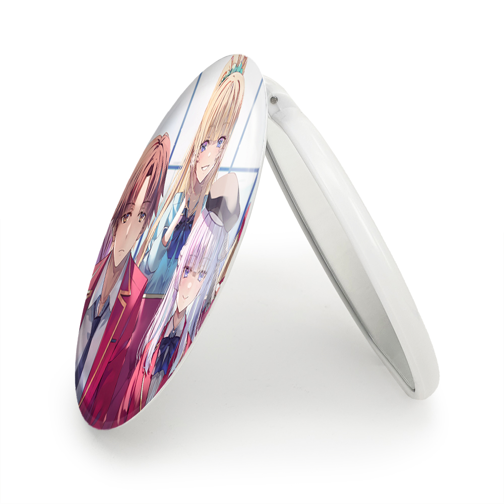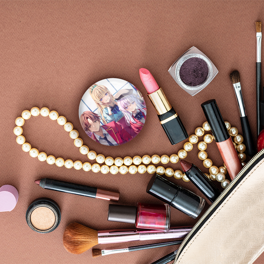 آینه های تاشو انیمه کلاس نخبگان (Classroom Elite) خندالو، از جنس پلاستیک فشرده ABS تولید شده و به رنگ سفید می باشد. یکی از آینه ها ابعاد واقعی را نشان داده و دیگری با قابلیت بزرگنمایی، جزئیات را بهتر نمایش می دهد. ابعاد هر یک از آینه ها، دایره ای به قطر 7.5 سانت می باشد که نه خیلی بزرگ و غیر قابل استفاده در کیف آرایشی ست و نه خیلی کوچک که تصویر خاصی در آن مشاهده نشود. آینه تاشو انیمه کلاس نخبگان (Classroom Elite) سایزی استاندارد و کارآمد دارد و در هر کیفی جا میگیرد. چاپ طرح بوسیله چاپگرهای دیجیتال شش رنگ با شفافیت و کیفیتی مثال زدنی بر روی یک وجه از بدنه ی آینه انجام گرفته و با روکش لمینت حرارتی پوشیده شده که در مقابل آسیب و خط و خش مقاوم بوده و کیفیت بالایی دارد. درب آینه بوسیله قفل بدنه ی آن، باز نمی ماند و کاملا بسته می شود و مناسب قرار گیری در کیف لوازم آرایش و کیف های کوچک دستی نیز هست. آینه های تاشو انیمه کلاس نخبگان (Classroom Elite) خندالو با تنوع طرحی بسیار بالا، سلیقه هر نوع مخاطبی را تامین میکند.