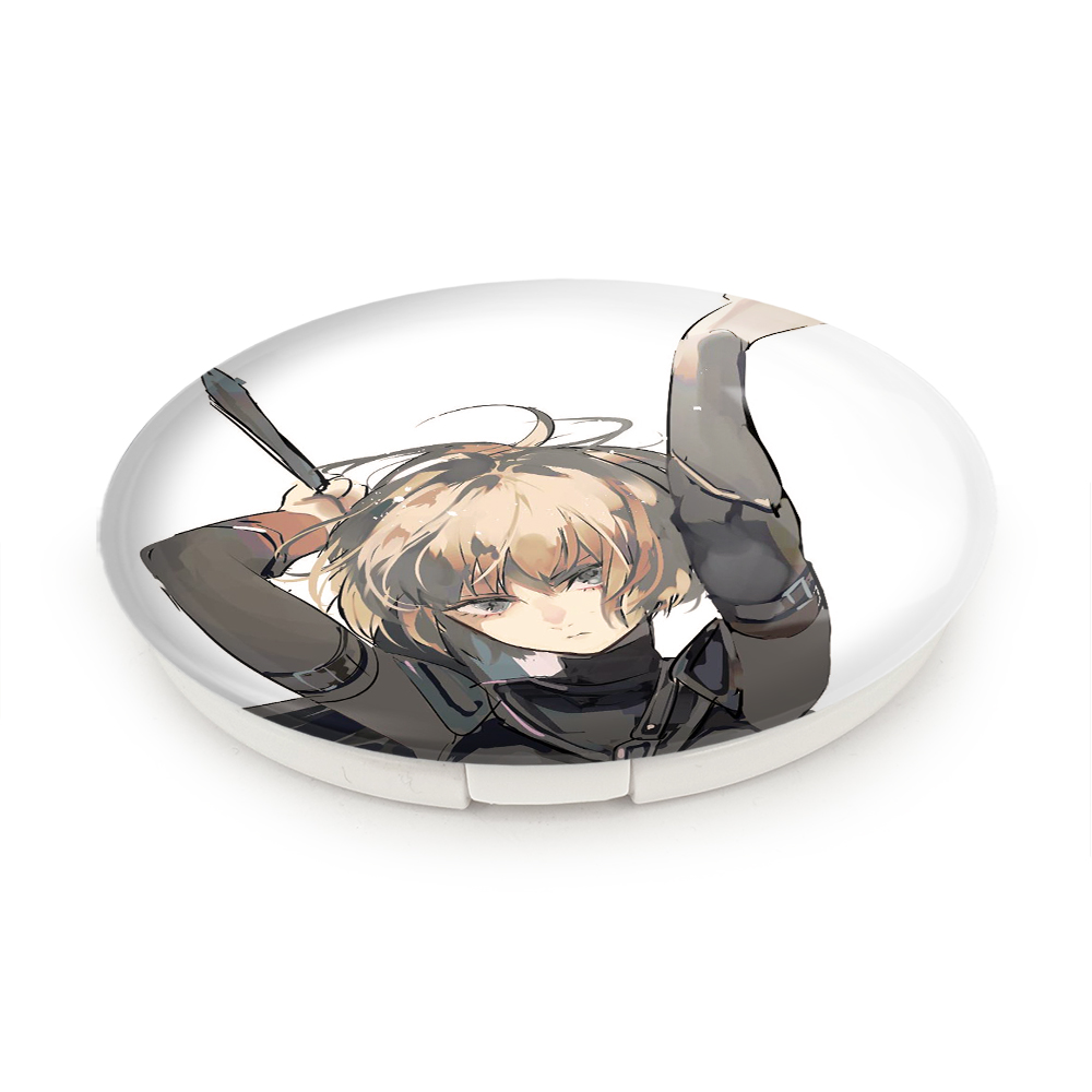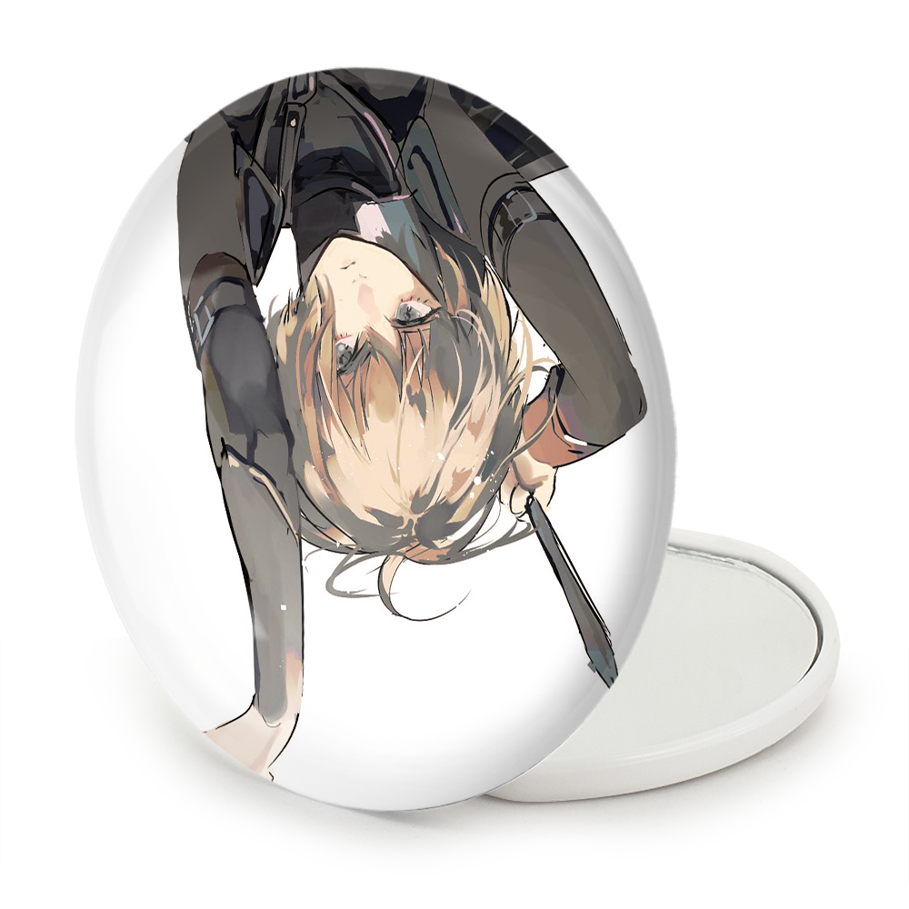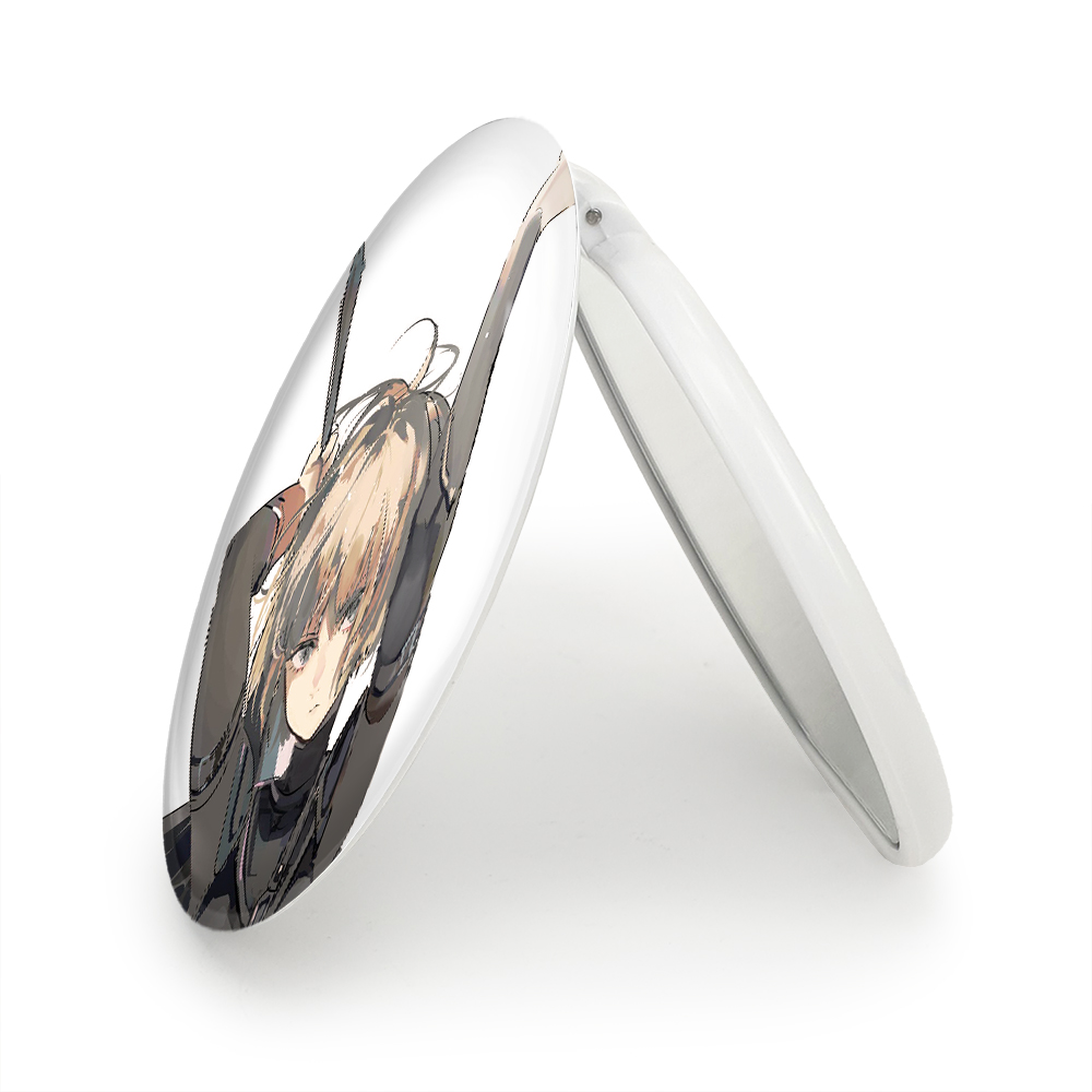 آینه های تاشو انیمه کلیمور خندالو، از جنس پلاستیک فشرده ABS تولید شده و به رنگ سفید می باشد. یکی از آینه ها ابعاد واقعی را نشان داده و دیگری با قابلیت بزرگنمایی، جزئیات را بهتر نمایش می دهد. ابعاد هر یک از آینه ها، دایره ای به قطر 7.5 سانت می باشد که نه خیلی بزرگ و غیر قابل استفاده در کیف آرایشی ست و نه خیلی کوچک که تصویر خاصی در آن مشاهده نشود. آینه تاشو انیمه کلیمور سایزی استاندارد و کارآمد دارد و در هر کیفی جا میگیرد. چاپ طرح بوسیله چاپگرهای دیجیتال شش رنگ با شفافیت و کیفیتی مثال زدنی بر روی یک وجه از بدنه ی آینه انجام گرفته و با روکش لمینت حرارتی پوشیده شده که در مقابل آسیب و خط و خش مقاوم بوده و کیفیت بالایی دارد. درب آینه بوسیله قفل بدنه ی آن، باز نمی ماند و کاملا بسته می شود و مناسب قرار گیری در کیف لوازم آرایش و کیف های کوچک دستی نیز هست. آینه های تاشو انیمه کلیمور خندالو با تنوع طرحی بسیار بالا، سلیقه هر نوع مخاطبی را تامین میکند.