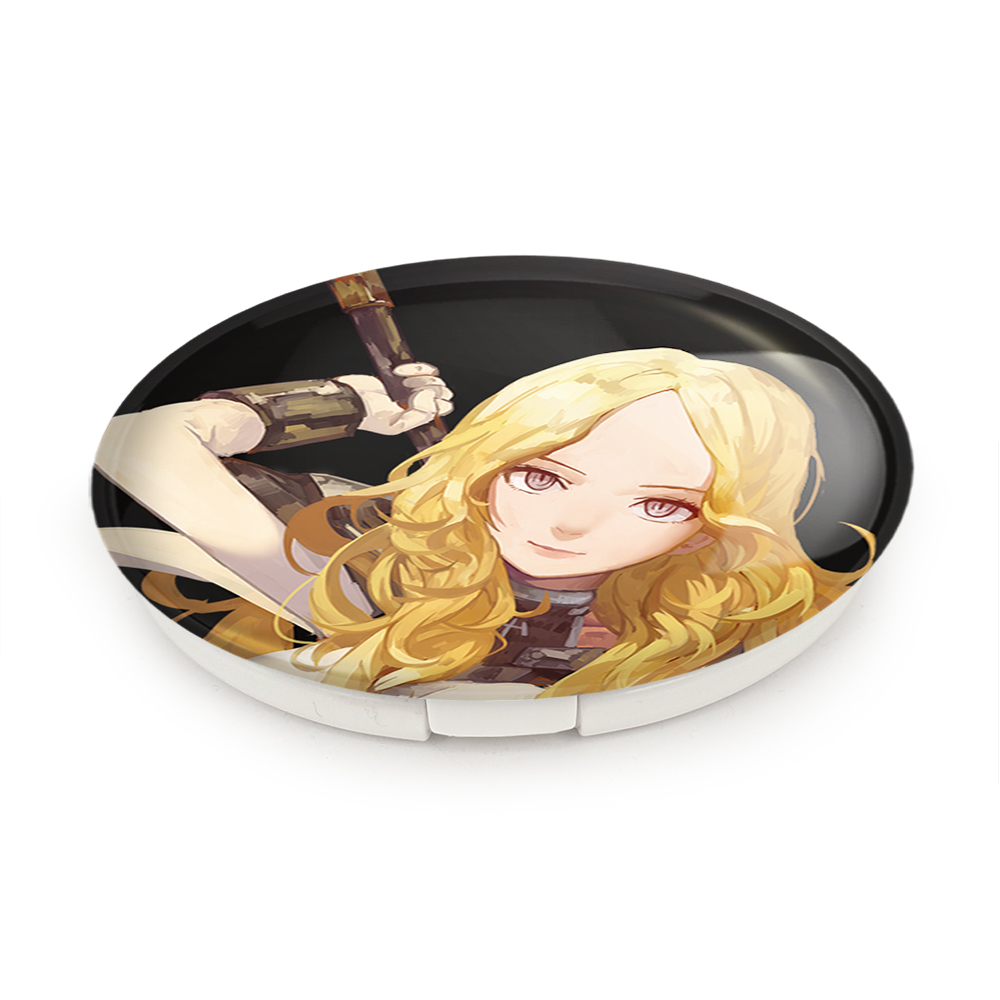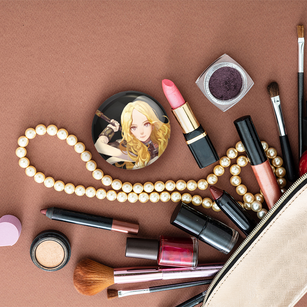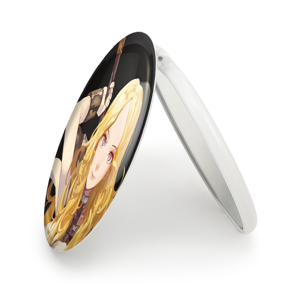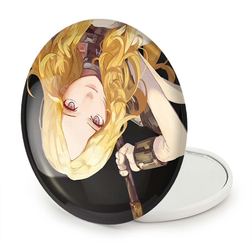 آینه های تاشو انیمه کلیمور خندالو، از جنس پلاستیک فشرده ABS تولید شده و به رنگ سفید می باشد. یکی از آینه ها ابعاد واقعی را نشان داده و دیگری با قابلیت بزرگنمایی، جزئیات را بهتر نمایش می دهد. ابعاد هر یک از آینه ها، دایره ای به قطر 7.5 سانت می باشد که نه خیلی بزرگ و غیر قابل استفاده در کیف آرایشی ست و نه خیلی کوچک که تصویر خاصی در آن مشاهده نشود. آینه تاشو انیمه کلیمور سایزی استاندارد و کارآمد دارد و در هر کیفی جا میگیرد. چاپ طرح بوسیله چاپگرهای دیجیتال شش رنگ با شفافیت و کیفیتی مثال زدنی بر روی یک وجه از بدنه ی آینه انجام گرفته و با روکش لمینت حرارتی پوشیده شده که در مقابل آسیب و خط و خش مقاوم بوده و کیفیت بالایی دارد. درب آینه بوسیله قفل بدنه ی آن، باز نمی ماند و کاملا بسته می شود و مناسب قرار گیری در کیف لوازم آرایش و کیف های کوچک دستی نیز هست. آینه های تاشو انیمه کلیمور خندالو با تنوع طرحی بسیار بالا، سلیقه هر نوع مخاطبی را تامین میکند.