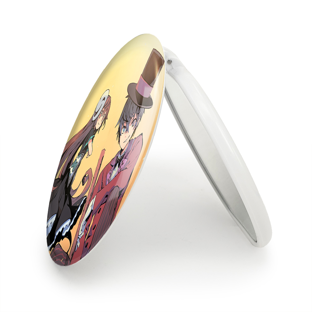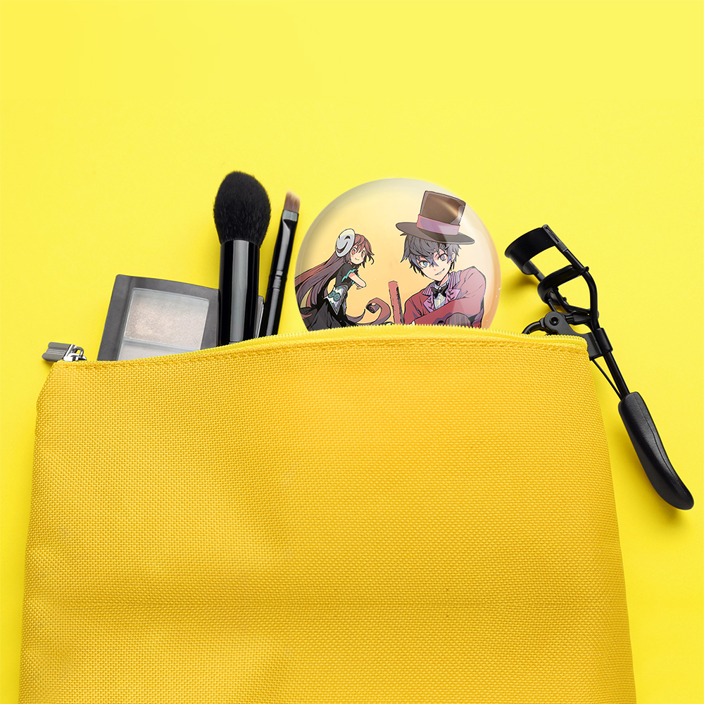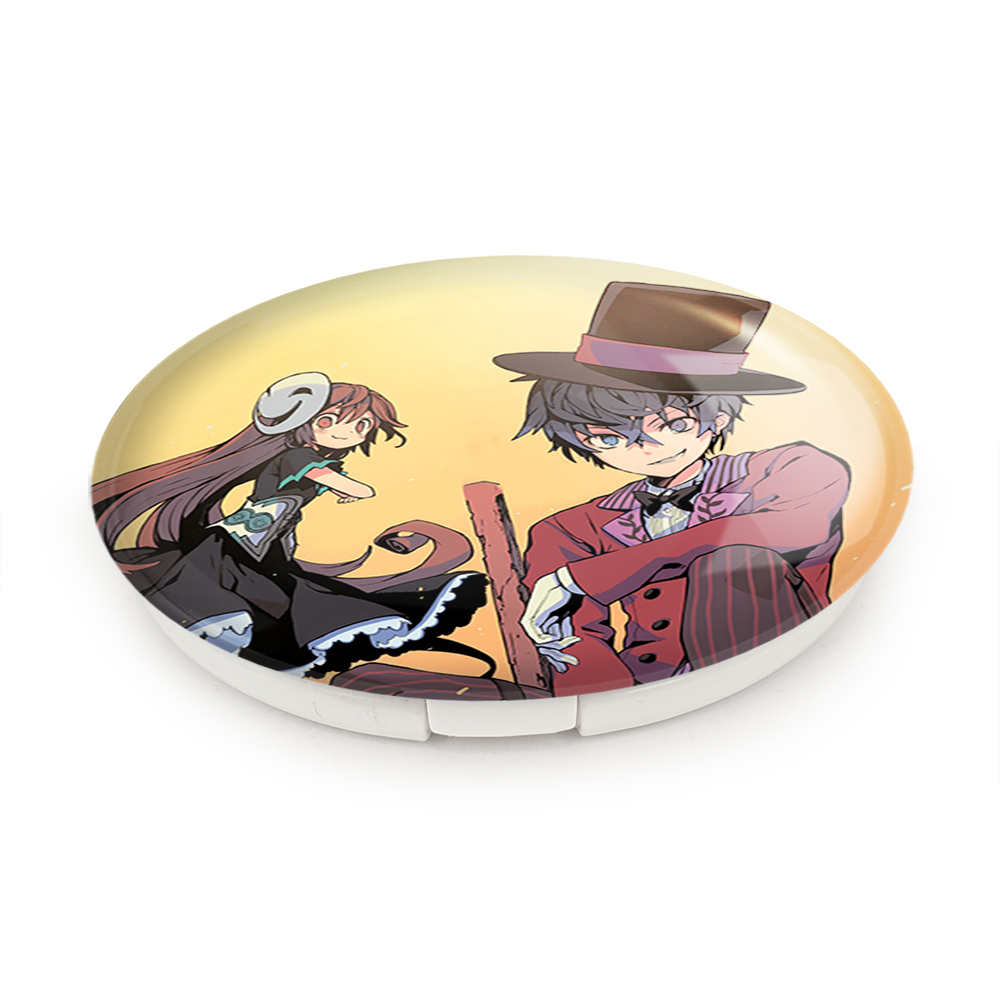 آینه های تاشو انیمه گلوله سیاه خندالو، از جنس پلاستیک فشرده ABS تولید شده و به رنگ سفید می باشد. یکی از آینه ها ابعاد واقعی را نشان داده و دیگری با قابلیت بزرگنمایی، جزئیات را بهتر نمایش می دهد. ابعاد هر یک از آینه ها، دایره ای به قطر 7.5 سانت می باشد که نه خیلی بزرگ و غیر قابل استفاده در کیف آرایشی ست و نه خیلی کوچک که تصویر خاصی در آن مشاهده نشود. آینه تاشو انیمه گلوله سیاه سایزی استاندارد و کارآمد دارد و در هر کیفی جا میگیرد. چاپ طرح بوسیله چاپگرهای دیجیتال شش رنگ با شفافیت و کیفیتی مثال زدنی بر روی یک وجه از بدنه ی آینه انجام گرفته و با روکش لمینت حرارتی پوشیده شده که در مقابل آسیب و خط و خش مقاوم بوده و کیفیت بالایی دارد. درب آینه بوسیله قفل بدنه ی آن، باز نمی ماند و کاملا بسته می شود و مناسب قرار گیری در کیف لوازم آرایش و کیف های کوچک دستی نیز هست. آینه های تاشو انیمه گلوله سیاه خندالو با تنوع طرحی بسیار بالا، سلیقه هر نوع مخاطبی را تامین میکند.