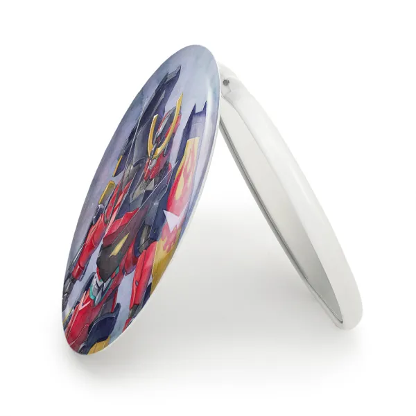 آینه های تاشو انیمه گورن لاگان خندالو، از جنس پلاستیک فشرده ABS تولید شده و به رنگ سفید می باشد. یکی از آینه ها ابعاد واقعی را نشان داده و دیگری با قابلیت بزرگنمایی، جزئیات را بهتر نمایش می دهد. ابعاد هر یک از آینه ها، دایره ای به قطر 7.5 سانت می باشد که نه خیلی بزرگ و غیر قابل استفاده در کیف آرایشی ست و نه خیلی کوچک که تصویر خاصی در آن مشاهده نشود. آینه تاشو انیمه گورن لاگان سایزی استاندارد و کارآمد دارد و در هر کیفی جا میگیرد. چاپ طرح بوسیله چاپگرهای دیجیتال شش رنگ با شفافیت و کیفیتی مثال زدنی بر روی یک وجه از بدنه ی آینه انجام گرفته و با روکش لمینت حرارتی پوشیده شده که در مقابل آسیب و خط و خش مقاوم بوده و کیفیت بالایی دارد. درب آینه بوسیله قفل بدنه ی آن، باز نمی ماند و کاملا بسته می شود و مناسب قرار گیری در کیف لوازم آرایش و کیف های کوچک دستی نیز هست. آینه های تاشو انیمه گورن لاگان خندالو با تنوع طرحی بسیار بالا، سلیقه هر نوع مخاطبی را تامین میکند.