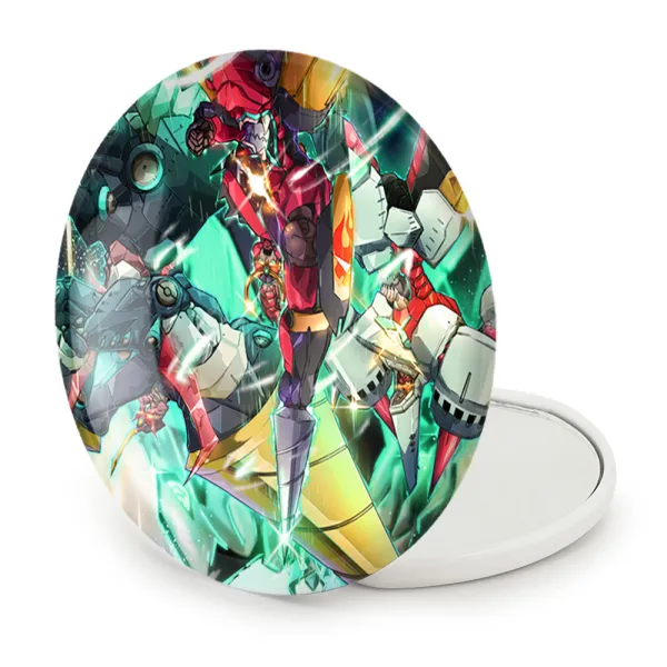 آینه های تاشو انیمه گورن لاگان خندالو، از جنس پلاستیک فشرده ABS تولید شده و به رنگ سفید می باشد. یکی از آینه ها ابعاد واقعی را نشان داده و دیگری با قابلیت بزرگنمایی، جزئیات را بهتر نمایش می دهد.