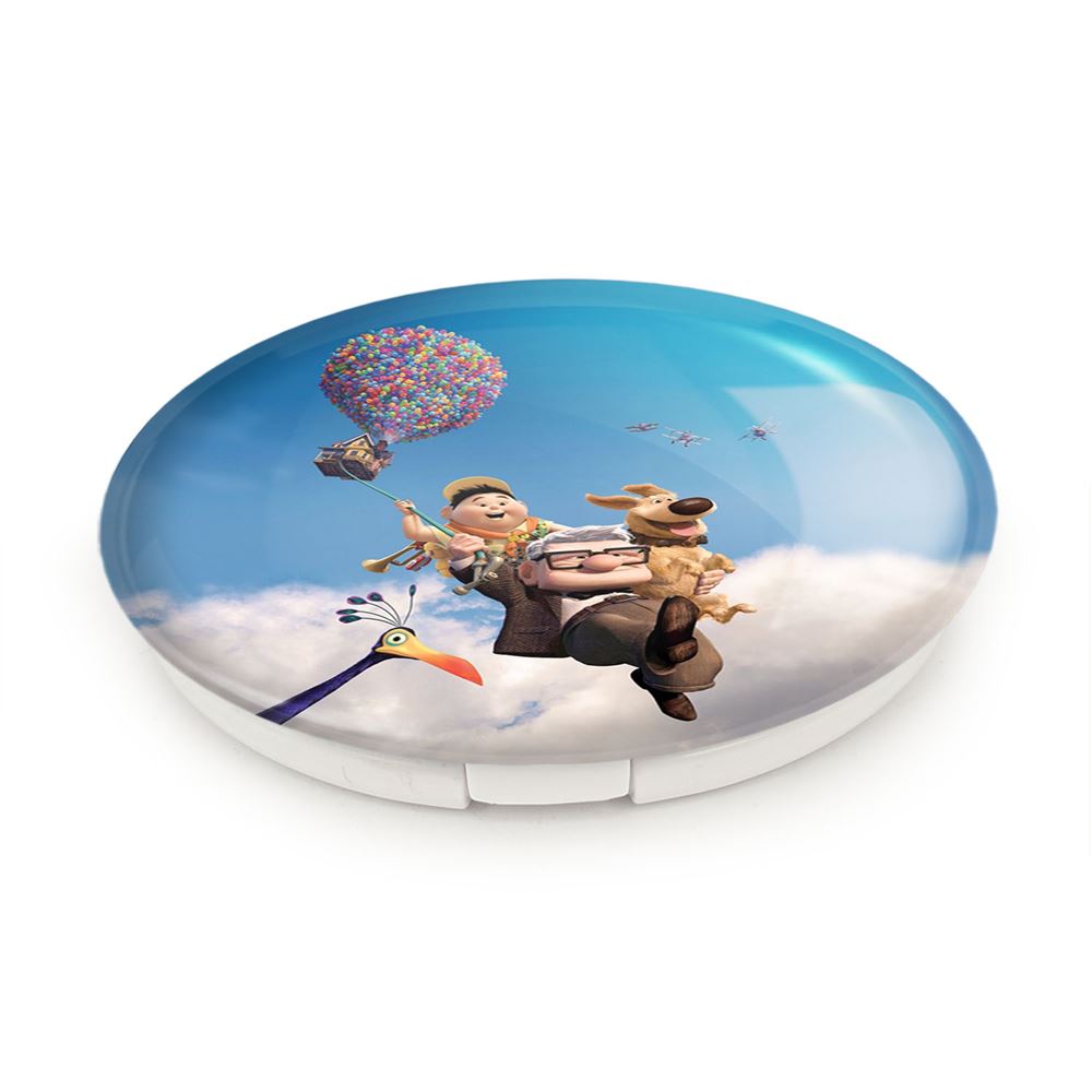 آینه های تاشو انیمیشن آپ UP خندالو، از جنس پلاستیک فشرده ABS تولید شده و به رنگ سفید می باشد. یکی از آینه ها ابعاد واقعی را نشان داده و دیگری با قابلیت بزرگنمایی، جزئیات را بهتر نمایش می دهد. ابعاد هر یک از آینه ها، دایره ای به قطر 7.5 سانت می باشد که نه خیلی بزرگ و غیر قابل استفاده در کیف آرایشی ست و نه خیلی کوچک که تصویر خاصی در آن مشاهده نشود. آینه تاشو انیمیشن آپ UP سایزی استاندارد و کارآمد دارد و در هر کیفی جا میگیرد. چاپ طرح بوسیله چاپگرهای دیجیتال شش رنگ با شفافیت و کیفیتی مثال زدنی بر روی یک وجه از بدنه ی آینه انجام گرفته و با روکش لمینت حرارتی پوشیده شده که در مقابل آسیب و خط و خش مقاوم بوده و کیفیت بالایی دارد. درب آینه بوسیله قفل بدنه ی آن، باز نمی ماند و کاملا بسته می شود و مناسب قرار گیری در کیف لوازم آرایش و کیف های کوچک دستی نیز هست. آینه های تاشو انیمیشن آپ UP خندالو با تنوع طرحی بسیار بالا، سلیقه هر نوع مخاطبی را تامین میکند.