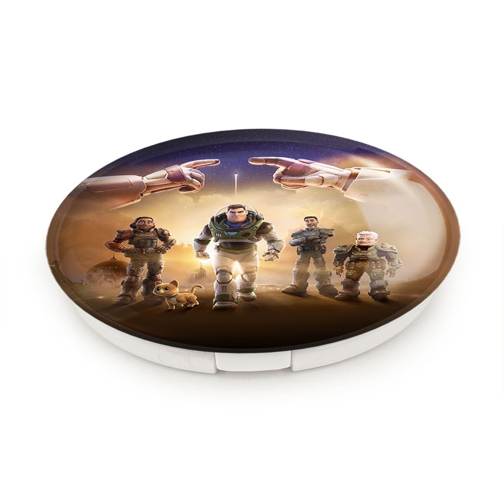 آینه های تاشو انیمیشن باز لایتیر خندالو، از جنس پلاستیک فشرده ABS تولید شده و به رنگ سفید می باشد. یکی از آینه ها ابعاد واقعی را نشان داده و دیگری با قابلیت بزرگنمایی، جزئیات را بهتر نمایش می دهد. ابعاد هر یک از آینه ها، دایره ای به قطر 7.5 سانت می باشد که نه خیلی بزرگ و غیر قابل استفاده در کیف آرایشی ست و نه خیلی کوچک که تصویر خاصی در آن مشاهده نشود. آینه تاشو انیمیشن باز لایتیر سایزی استاندارد و کارآمد دارد و در هر کیفی جا میگیرد. چاپ طرح بوسیله چاپگرهای دیجیتال شش رنگ با شفافیت و کیفیتی مثال زدنی بر روی یک وجه از بدنه ی آینه انجام گرفته و با روکش لمینت حرارتی پوشیده شده که در مقابل آسیب و خط و خش مقاوم بوده و کیفیت بالایی دارد. درب آینه بوسیله قفل بدنه ی آن، باز نمی ماند و کاملا بسته می شود و مناسب قرار گیری در کیف لوازم آرایش و کیف های کوچک دستی نیز هست. آینه های تاشو انیمیشن باز لایتیر خندالو با تنوع طرحی بسیار بالا، سلیقه هر نوع مخاطبی را تامین میکند.