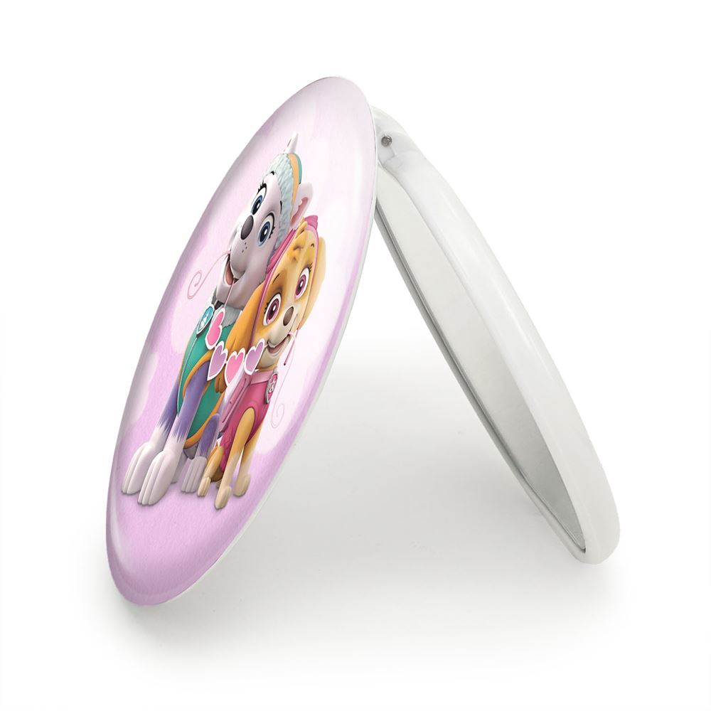 آینه های تاشو انیمیشن سگ های نگهبان خندالو، از جنس پلاستیک فشرده ABS تولید شده و به رنگ سفید می باشد. یکی از آینه ها ابعاد واقعی را نشان داده و دیگری با قابلیت بزرگنمایی، جزئیات را بهتر نمایش می دهد. ابعاد هر یک از آینه ها، دایره ای به قطر 7.5 سانت می باشد که نه خیلی بزرگ و غیر قابل استفاده در کیف آرایشی ست و نه خیلی کوچک که تصویر خاصی در آن مشاهده نشود. آینه تاشو انیمیشن سگ های نگهبان سایزی استاندارد و کارآمد دارد و در هر کیفی جا میگیرد. چاپ طرح بوسیله چاپگرهای دیجیتال شش رنگ با شفافیت و کیفیتی مثال زدنی بر روی یک وجه از بدنه ی آینه انجام گرفته و با روکش لمینت حرارتی پوشیده شده که در مقابل آسیب و خط و خش مقاوم بوده و کیفیت بالایی دارد. درب آینه بوسیله قفل بدنه ی آن، باز نمی ماند و کاملا بسته می شود و مناسب قرار گیری در کیف لوازم آرایش و کیف های کوچک دستی نیز هست. آینه های تاشو انیمیشن سگ های نگهبان خندالو با تنوع طرحی بسیار بالا، سلیقه هر نوع مخاطبی را تامین میکند.