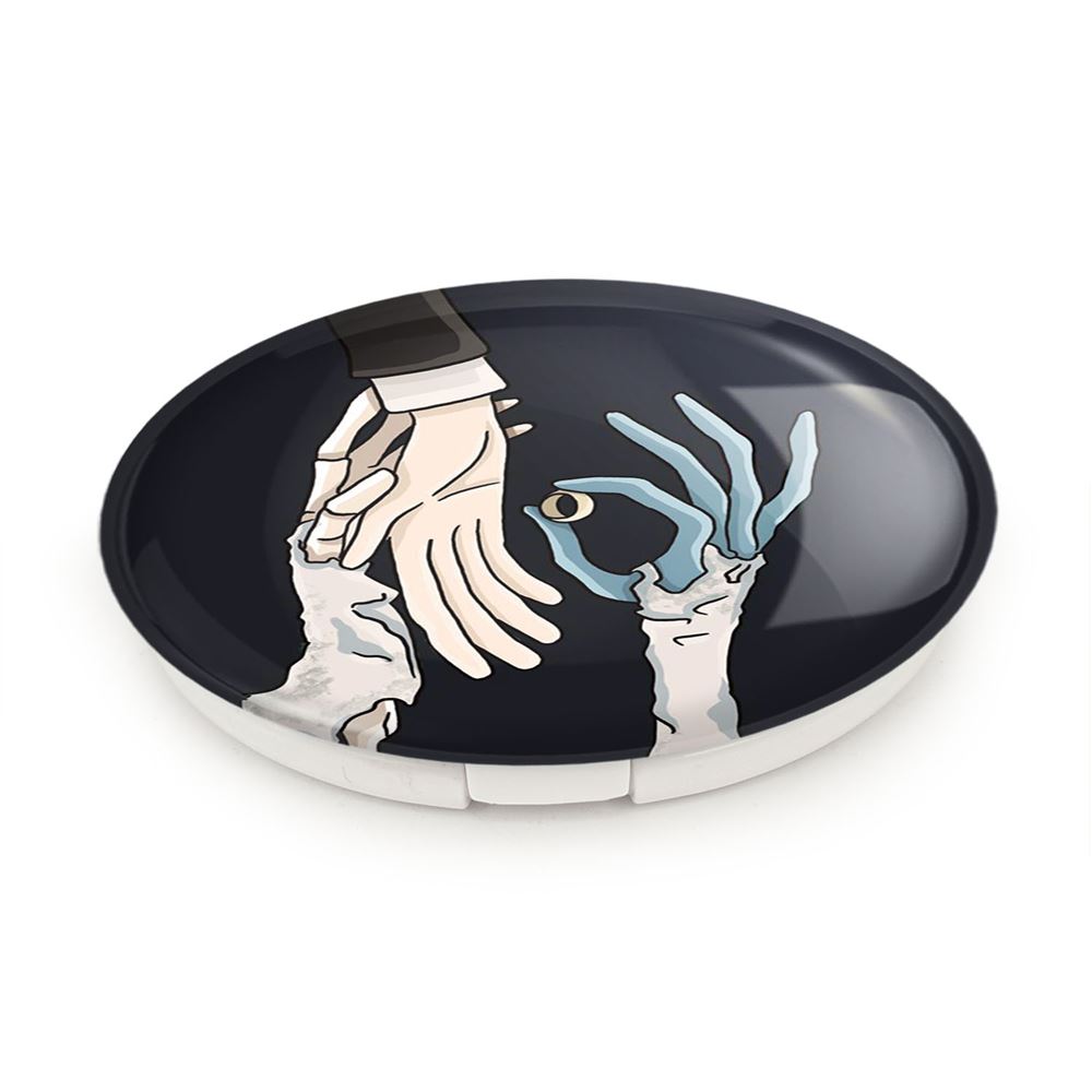 آینه های تاشو انیمیشن عروس مردگان خندالو، از جنس پلاستیک فشرده ABS تولید شده و به رنگ سفید می باشد. یکی از آینه ها ابعاد واقعی را نشان داده و دیگری با قابلیت بزرگنمایی، جزئیات را بهتر نمایش می دهد.