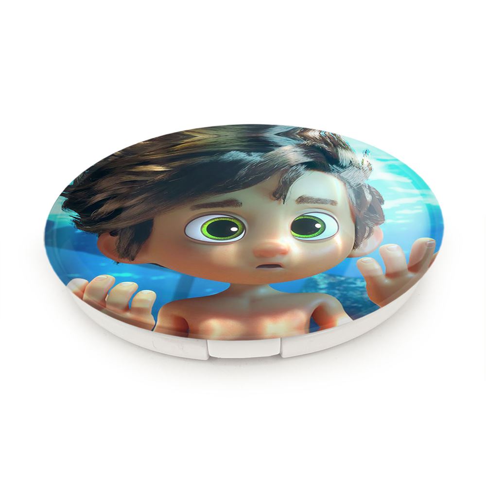 آینه های تاشو انیمیشن پسر دلفینی خندالو، از جنس پلاستیک فشرده ABS تولید شده و به رنگ سفید می باشد. یکی از آینه ها ابعاد واقعی را نشان داده و دیگری با قابلیت بزرگنمایی، جزئیات را بهتر نمایش می دهد.