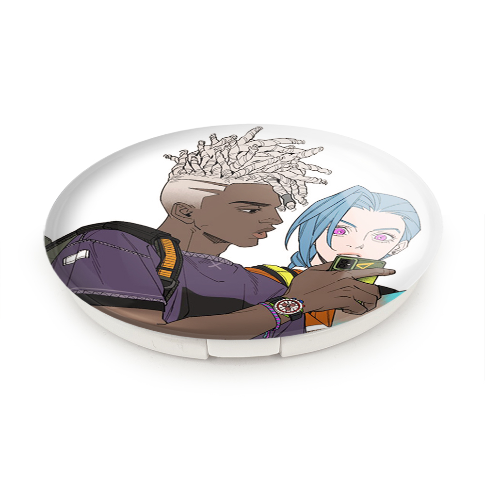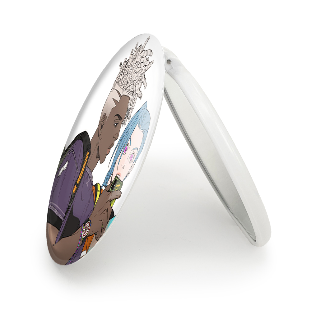 آینه های تاشو اکو و جینکس آرکین (Arcane) خندالو، از جنس پلاستیک فشرده ABS تولید شده و به رنگ سفید می باشد. یکی از آینه ها ابعاد واقعی را نشان داده و دیگری با قابلیت بزرگنمایی، جزئیات را بهتر نمایش می دهد. ابعاد هر یک از آینه ها، دایره ای به قطر 7.5 سانت می باشد که نه خیلی بزرگ و غیر قابل استفاده در کیف آرایشی ست و نه خیلی کوچک که تصویر خاصی در آن مشاهده نشود. آینه تاشو اکو و جینکس آرکین (Arcane) سایزی استاندارد و کارآمد دارد و در هر کیفی جا میگیرد. چاپ طرح بوسیله چاپگرهای دیجیتال شش رنگ با شفافیت و کیفیتی مثال زدنی بر روی یک وجه از بدنه ی آینه انجام گرفته و با روکش لمینت حرارتی پوشیده شده که در مقابل آسیب و خط و خش مقاوم بوده و کیفیت بالایی دارد. درب آینه بوسیله قفل بدنه ی آن، باز نمی ماند و کاملا بسته می شود و مناسب قرار گیری در کیف لوازم آرایش و کیف های کوچک دستی نیز هست. آینه های تاشو اکو و جینکس آرکین (Arcane) خندالو با تنوع طرحی بسیار بالا، سلیقه هر نوع مخاطبی را تامین میکند.