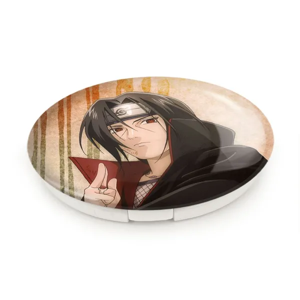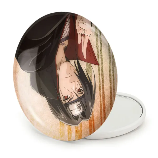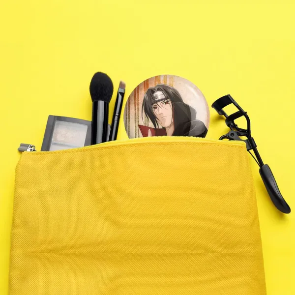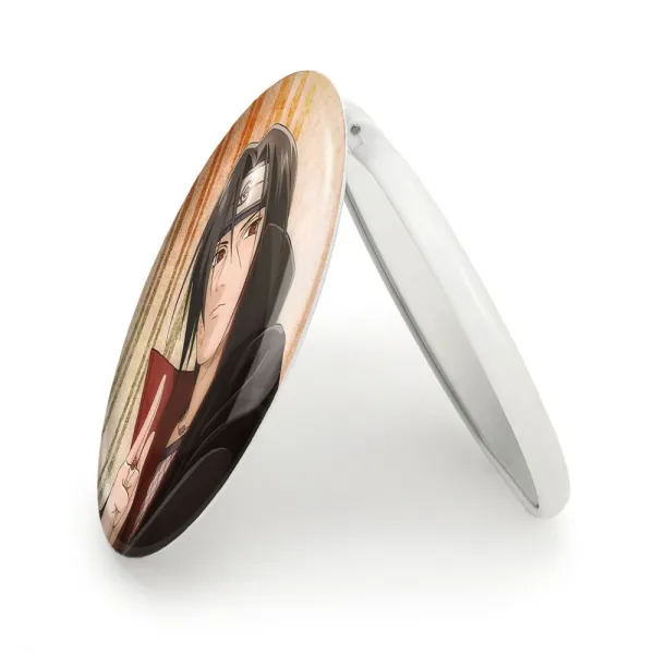 آینه های تاشو ایتاچی اوچیها انیمه ناروتو Naruto خندالو، از جنس پلاستیک فشرده ABS تولید شده و به رنگ سفید می باشد. یکی از آینه ها ابعاد واقعی را نشان داده و دیگری با قابلیت بزرگنمایی، جزئیات را بهتر نمایش می دهد. ابعاد هر یک از آینه ها، دایره ای به قطر 7.5 سانت می باشد که نه خیلی بزرگ و غیر قابل استفاده در کیف آرایشی ست و نه خیلی کوچک که تصویر خاصی در آن مشاهده نشود. آینه تاشو ایتاچی اوچیها انیمه ناروتو Naruto سایزی استاندارد و کارآمد دارد و در هر کیفی جا میگیرد. چاپ طرح بوسیله چاپگرهای دیجیتال شش رنگ با شفافیت و کیفیتی مثال زدنی بر روی یک وجه از بدنه ی آینه انجام گرفته و با روکش لمینت حرارتی پوشیده شده که در مقابل آسیب و خط و خش مقاوم بوده و کیفیت بالایی دارد. درب آینه بوسیله قفل بدنه ی آن، باز نمی ماند و کاملا بسته می شود و مناسب قرار گیری در کیف لوازم آرایش و کیف های کوچک دستی نیز هست. آینه های تاشو ایتاچی اوچیها انیمه ناروتو Naruto خندالو با تنوع طرحی بسیار بالا، سلیقه هر نوع مخاطبی را تامین میکند.
