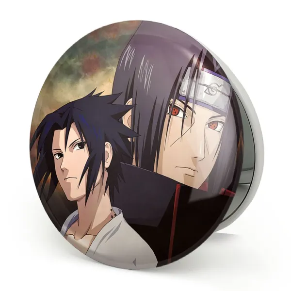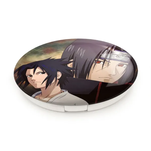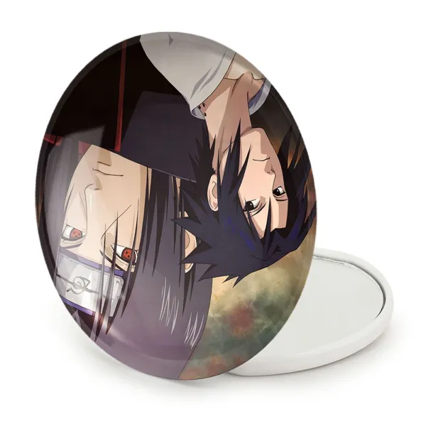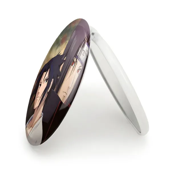 آینه های تاشو ایتاچی و ساسکه انیمه ناروتو Naruto خندالو، از جنس پلاستیک فشرده ABS تولید شده و به رنگ سفید می باشد. یکی از آینه ها ابعاد واقعی را نشان داده و دیگری با قابلیت بزرگنمایی، جزئیات را بهتر نمایش می دهد. ابعاد هر یک از آینه ها، دایره ای به قطر 7.5 سانت می باشد که نه خیلی بزرگ و غیر قابل استفاده در کیف آرایشی ست و نه خیلی کوچک که تصویر خاصی در آن مشاهده نشود. آینه تاشو ایتاچی و ساسکه انیمه ناروتو Naruto سایزی استاندارد و کارآمد دارد و در هر کیفی جا میگیرد. چاپ طرح بوسیله چاپگرهای دیجیتال شش رنگ با شفافیت و کیفیتی مثال زدنی بر روی یک وجه از بدنه ی آینه انجام گرفته و با روکش لمینت حرارتی پوشیده شده که در مقابل آسیب و خط و خش مقاوم بوده و کیفیت بالایی دارد. درب آینه بوسیله قفل بدنه ی آن، باز نمی ماند و کاملا بسته می شود و مناسب قرار گیری در کیف لوازم آرایش و کیف های کوچک دستی نیز هست. آینه های تاشو ایتاچی و ساسکه انیمه ناروتو Naruto خندالو با تنوع طرحی بسیار بالا، سلیقه هر نوع مخاطبی را تامین میکند.