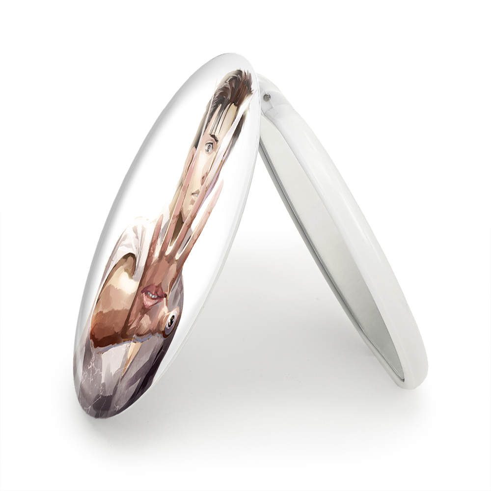 آینه های تاشو ایزومی انیمه انگل خندالو، از جنس پلاستیک فشرده ABS تولید شده و به رنگ سفید می باشد. یکی از آینه ها ابعاد واقعی را نشان داده و دیگری با قابلیت بزرگنمایی، جزئیات را بهتر نمایش می دهد. ابعاد هر یک از آینه ها، دایره ای به قطر 7.5 سانت می باشد که نه خیلی بزرگ و غیر قابل استفاده در کیف آرایشی ست و نه خیلی کوچک که تصویر خاصی در آن مشاهده نشود. آینه تاشو ایزومی انیمه انگل سایزی استاندارد و کارآمد دارد و در هر کیفی جا میگیرد. چاپ طرح بوسیله چاپگرهای دیجیتال شش رنگ با شفافیت و کیفیتی مثال زدنی بر روی یک وجه از بدنه ی آینه انجام گرفته و با روکش لمینت حرارتی پوشیده شده که در مقابل آسیب و خط و خش مقاوم بوده و کیفیت بالایی دارد. درب آینه بوسیله قفل بدنه ی آن، باز نمی ماند و کاملا بسته می شود و مناسب قرار گیری در کیف لوازم آرایش و کیف های کوچک دستی نیز هست. آینه های تاشو ایزومی انیمه انگل خندالو با تنوع طرحی بسیار بالا، سلیقه هر نوع مخاطبی را تامین میکند.