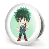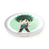 آینه های تاشو ایزوکو میدوریا انیمه آکادمی قهرمان من My Hero Academia خندالو، از جنس پلاستیک فشرده ABS تولید شده و به رنگ سفید می باشد. یکی از آینه ها ابعاد واقعی را نشان داده و دیگری با قابلیت بزرگنمایی، جزئیات را بهتر نمایش می دهد. ابعاد هر یک از آینه ها، دایره ای به قطر 7.5 سانت می باشد که نه خیلی بزرگ و غیر قابل استفاده در کیف آرایشی ست و نه خیلی کوچک که تصویر خاصی در آن مشاهده نشود. آینه تاشو ایزوکو میدوریا انیمه آکادمی قهرمان من My Hero Academia سایزی استاندارد و کارآمد دارد و در هر کیفی جا میگیرد. چاپ طرح بوسیله چاپگرهای دیجیتال شش رنگ با شفافیت و کیفیتی مثال زدنی بر روی یک وجه از بدنه ی آینه انجام گرفته و با روکش لمینت حرارتی پوشیده شده که در مقابل آسیب و خط و خش مقاوم بوده و کیفیت بالایی دارد. درب آینه بوسیله قفل بدنه ی آن، باز نمی ماند و کاملا بسته می شود و مناسب قرار گیری در کیف لوازم آرایش و کیف های کوچک دستی نیز هست. آینه های تاشو ایزوکو میدوریا انیمه آکادمی قهرمان من My Hero Academia خندالو با تنوع طرحی بسیار بالا، سلیقه هر نوع مخاطبی را تامین میکند.
