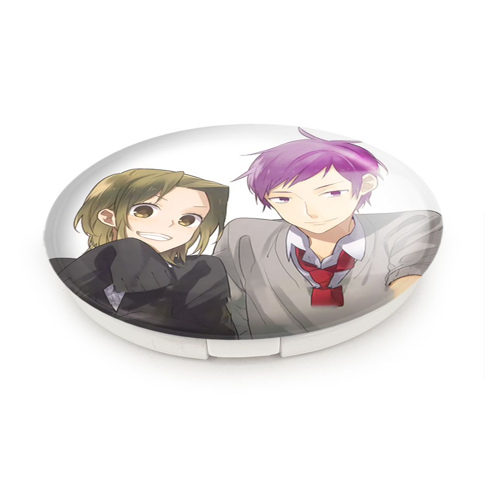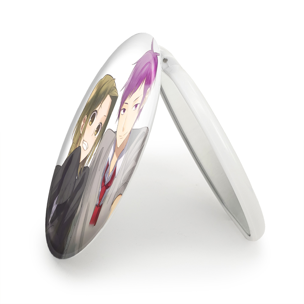 آینه های تاشو ایشیکاوا و یوکی انیمه هوریمیا خندالو، از جنس پلاستیک فشرده ABS تولید شده و به رنگ سفید می باشد. یکی از آینه ها ابعاد واقعی را نشان داده و دیگری با قابلیت بزرگنمایی، جزئیات را بهتر نمایش می دهد. ابعاد هر یک از آینه ها، دایره ای به قطر 7.5 سانت می باشد که نه خیلی بزرگ و غیر قابل استفاده در کیف آرایشی ست و نه خیلی کوچک که تصویر خاصی در آن مشاهده نشود. آینه تاشو ایشیکاوا و یوکی انیمه هوریمیا سایزی استاندارد و کارآمد دارد و در هر کیفی جا میگیرد. چاپ طرح بوسیله چاپگرهای دیجیتال شش رنگ با شفافیت و کیفیتی مثال زدنی بر روی یک وجه از بدنه ی آینه انجام گرفته و با روکش لمینت حرارتی پوشیده شده که در مقابل آسیب و خط و خش مقاوم بوده و کیفیت بالایی دارد. درب آینه بوسیله قفل بدنه ی آن، باز نمی ماند و کاملا بسته می شود و مناسب قرار گیری در کیف لوازم آرایش و کیف های کوچک دستی نیز هست. آینه های تاشو ایشیکاوا و یوکی انیمه هوریمیا خندالو با تنوع طرحی بسیار بالا، سلیقه هر نوع مخاطبی را تامین میکند.