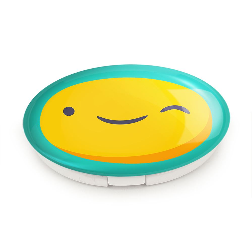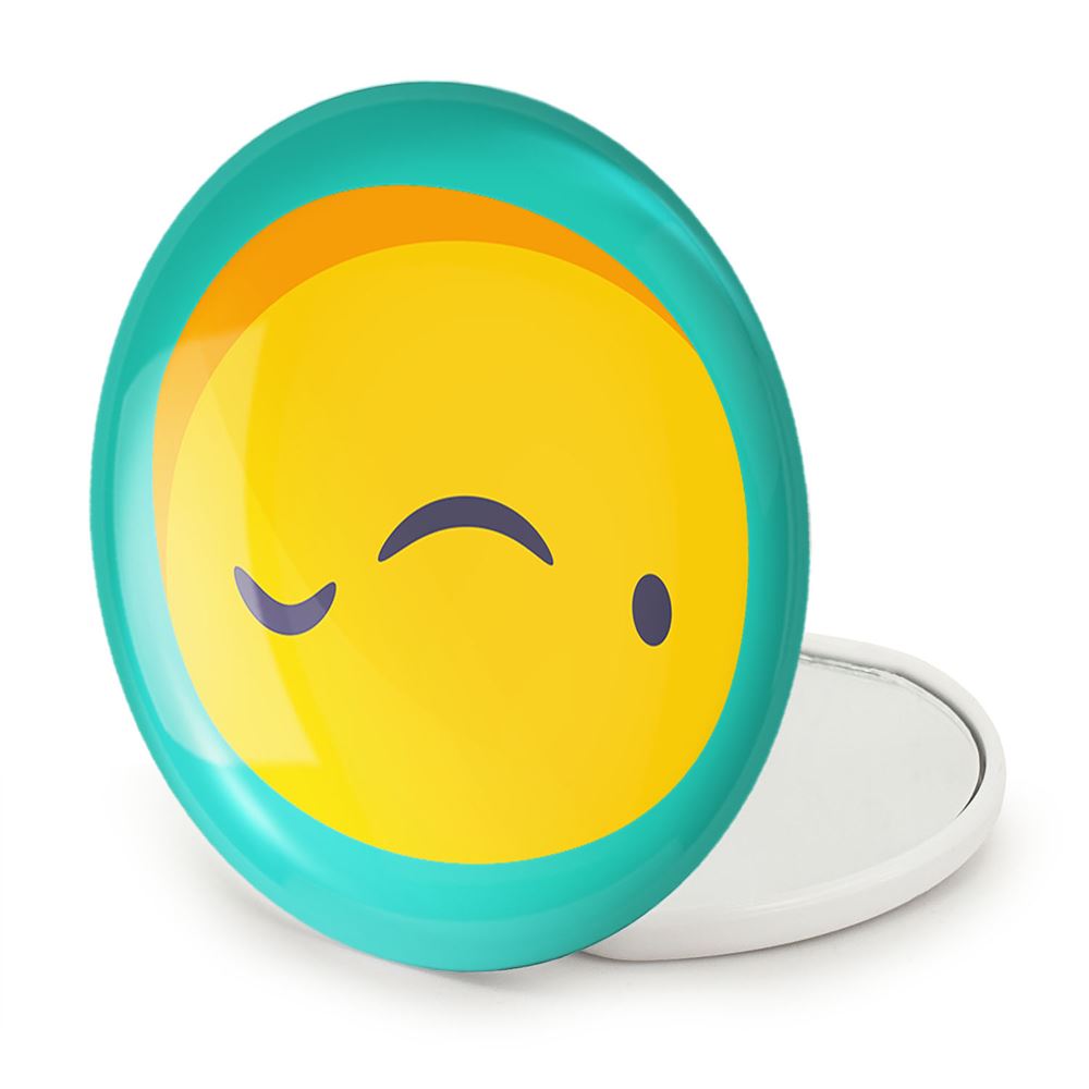 آینه های تاشو ایموجی Emoji خندالو، از جنس پلاستیک فشرده ABS تولید شده و به رنگ سفید می باشد. یکی از آینه ها ابعاد واقعی را نشان داده و دیگری با قابلیت بزرگنمایی، جزئیات را بهتر نمایش می دهد. ابعاد هر یک از آینه ها، دایره ای به قطر 7.5 سانت می باشد که نه خیلی بزرگ و غیر قابل استفاده در کیف آرایشی ست و نه خیلی کوچک که تصویر خاصی در آن مشاهده نشود. آینه تاشو ایموجی Emoji سایزی استاندارد و کارآمد دارد و در هر کیفی جا میگیرد. چاپ طرح بوسیله چاپگرهای دیجیتال شش رنگ با شفافیت و کیفیتی مثال زدنی بر روی یک وجه از بدنه ی آینه انجام گرفته و با روکش لمینت حرارتی پوشیده شده که در مقابل آسیب و خط و خش مقاوم بوده و کیفیت بالایی دارد. درب آینه بوسیله قفل بدنه ی آن، باز نمی ماند و کاملا بسته می شود و مناسب قرار گیری در کیف لوازم آرایش و کیف های کوچک دستی نیز هست. آینه های تاشو ایموجی Emoji خندالو با تنوع طرحی بسیار بالا، سلیقه هر نوع مخاطبی را تامین میکند.