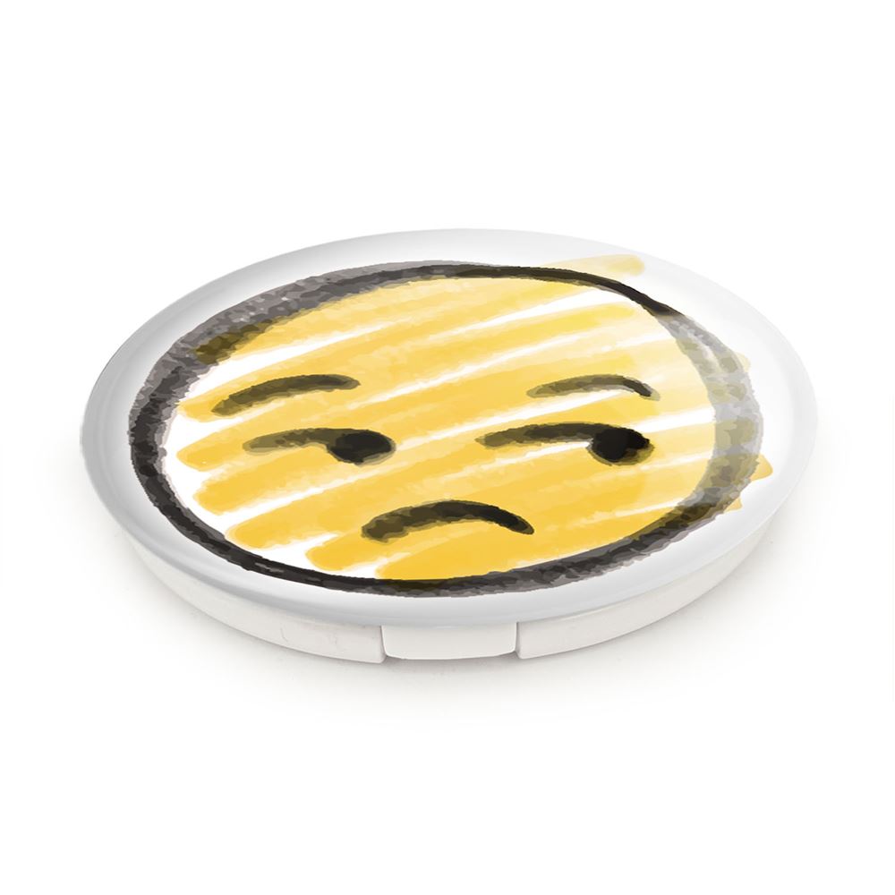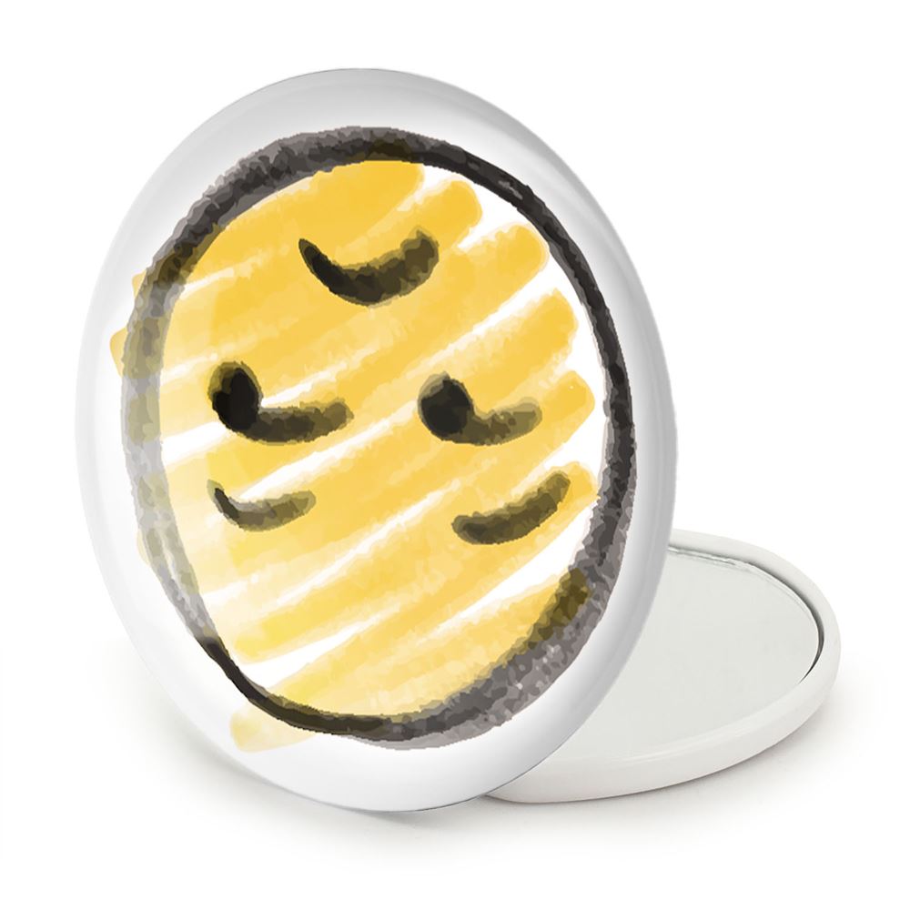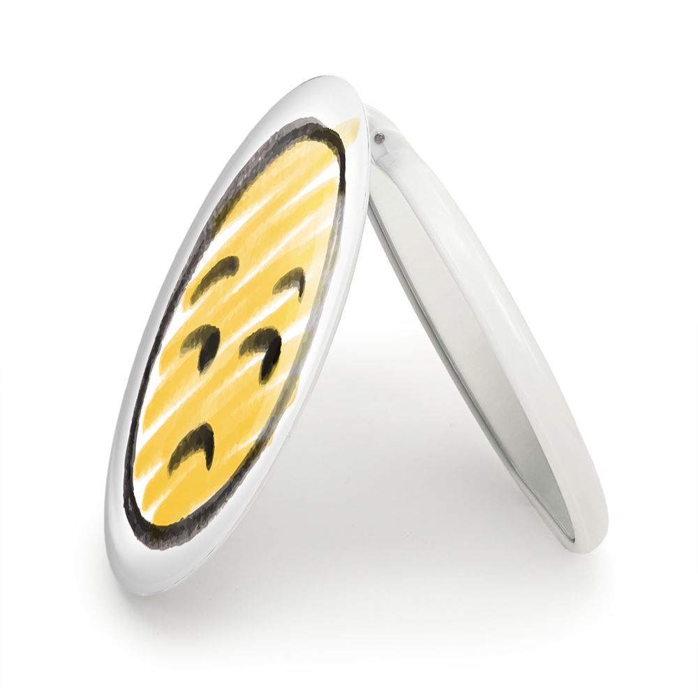 آینه های تاشو ایموجی Emoji خندالو، از جنس پلاستیک فشرده ABS تولید شده و به رنگ سفید می باشد. یکی از آینه ها ابعاد واقعی را نشان داده و دیگری با قابلیت بزرگنمایی، جزئیات را بهتر نمایش می دهد. ابعاد هر یک از آینه ها، دایره ای به قطر 7.5 سانت می باشد که نه خیلی بزرگ و غیر قابل استفاده در کیف آرایشی ست و نه خیلی کوچک که تصویر خاصی در آن مشاهده نشود. آینه تاشو ایموجی Emoji سایزی استاندارد و کارآمد دارد و در هر کیفی جا میگیرد. چاپ طرح بوسیله چاپگرهای دیجیتال شش رنگ با شفافیت و کیفیتی مثال زدنی بر روی یک وجه از بدنه ی آینه انجام گرفته و با روکش لمینت حرارتی پوشیده شده که در مقابل آسیب و خط و خش مقاوم بوده و کیفیت بالایی دارد. درب آینه بوسیله قفل بدنه ی آن، باز نمی ماند و کاملا بسته می شود و مناسب قرار گیری در کیف لوازم آرایش و کیف های کوچک دستی نیز هست. آینه های تاشو ایموجی Emoji خندالو با تنوع طرحی بسیار بالا، سلیقه هر نوع مخاطبی را تامین میکند.