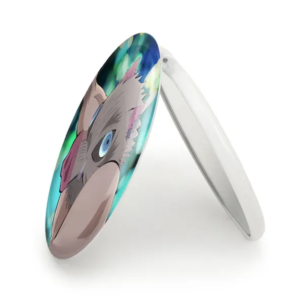 آینه های تاشو اینوسکه هاشیبیرا انیمه شیطان کش خندالو، از جنس پلاستیک فشرده ABS تولید شده و به رنگ سفید می باشد. یکی از آینه ها ابعاد واقعی را نشان داده و دیگری با قابلیت بزرگنمایی، جزئیات را بهتر نمایش می دهد. ابعاد هر یک از آینه ها، دایره ای به قطر 7.5 سانت می باشد که نه خیلی بزرگ و غیر قابل استفاده در کیف آرایشی ست و نه خیلی کوچک که تصویر خاصی در آن مشاهده نشود. آینه تاشو اینوسکه هاشیبیرا انیمه شیطان کش سایزی استاندارد و کارآمد دارد و در هر کیفی جا میگیرد. چاپ طرح بوسیله چاپگرهای دیجیتال شش رنگ با شفافیت و کیفیتی مثال زدنی بر روی یک وجه از بدنه ی آینه انجام گرفته و با روکش لمینت حرارتی پوشیده شده که در مقابل آسیب و خط و خش مقاوم بوده و کیفیت بالایی دارد. درب آینه بوسیله قفل بدنه ی آن، باز نمی ماند و کاملا بسته می شود و مناسب قرار گیری در کیف لوازم آرایش و کیف های کوچک دستی نیز هست. آینه های تاشو اینوسکه هاشیبیرا انیمه شیطان کش خندالو با تنوع طرحی بسیار بالا، سلیقه هر نوع مخاطبی را تامین میکند.