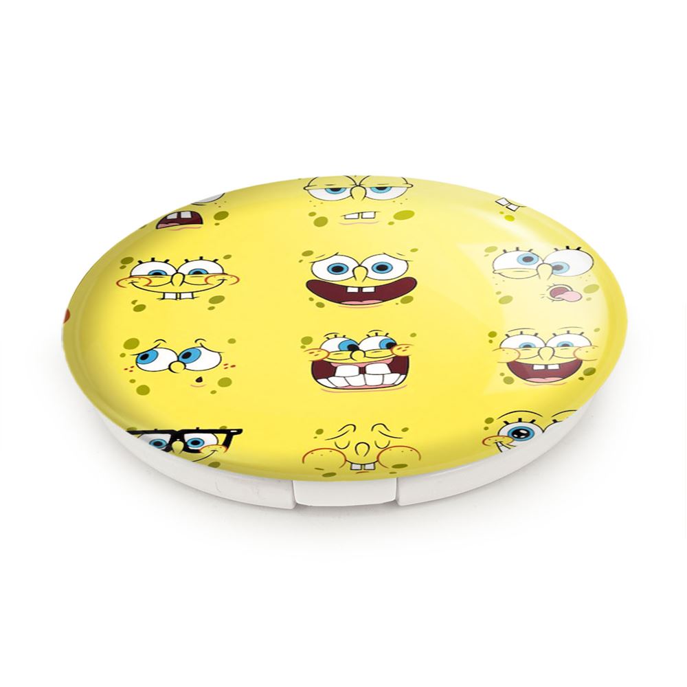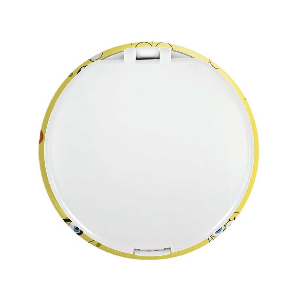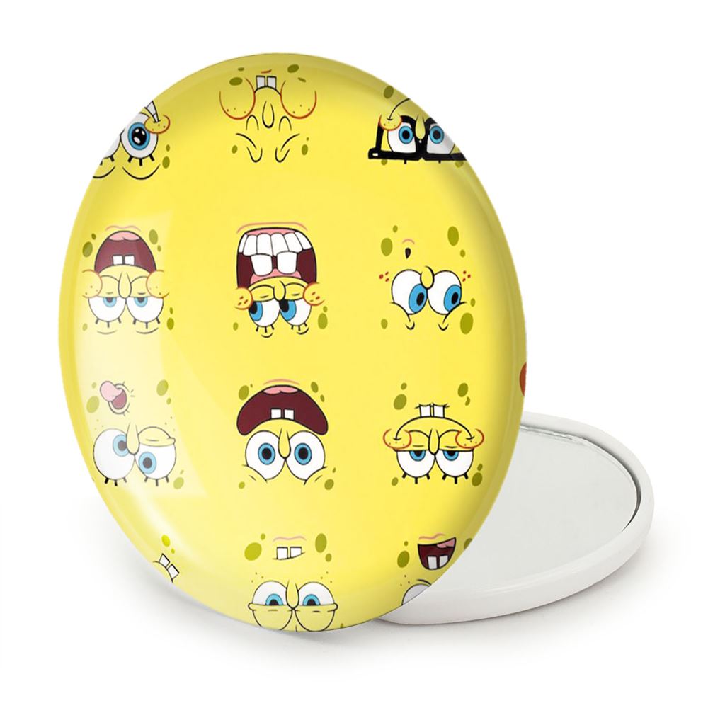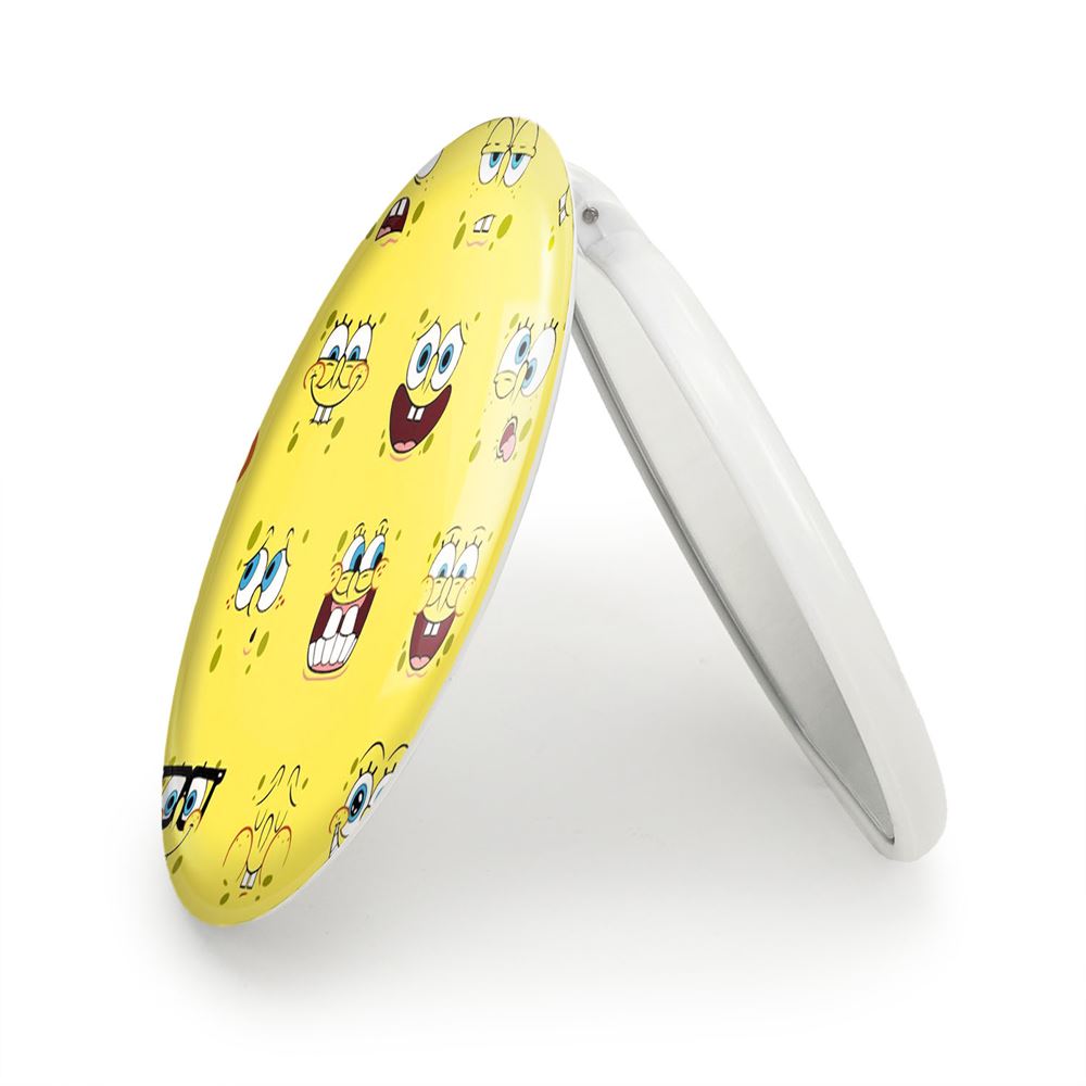 آینه های تاشو باب اسفنجی خندالو، از جنس پلاستیک فشرده ABS تولید شده و به رنگ سفید می باشد. یکی از آینه ها ابعاد واقعی را نشان داده و دیگری با قابلیت بزرگنمایی، جزئیات را بهتر نمایش می دهد. ابعاد هر یک از آینه ها، دایره ای به قطر 7.5 سانت می باشد که نه خیلی بزرگ و غیر قابل استفاده در کیف آرایشی ست و نه خیلی کوچک که تصویر خاصی در آن مشاهده نشود. آینه تاشو باب اسفنجی سایزی استاندارد و کارآمد دارد و در هر کیفی جا میگیرد. چاپ طرح بوسیله چاپگرهای دیجیتال شش رنگ با شفافیت و کیفیتی مثال زدنی بر روی یک وجه از بدنه ی آینه انجام گرفته و با روکش لمینت حرارتی پوشیده شده که در مقابل آسیب و خط و خش مقاوم بوده و کیفیت بالایی دارد. درب آینه بوسیله قفل بدنه ی آن، باز نمی ماند و کاملا بسته می شود و مناسب قرار گیری در کیف لوازم آرایش و کیف های کوچک دستی نیز هست. آینه های تاشو باب اسفنجی خندالو با تنوع طرحی بسیار بالا، سلیقه هر نوع مخاطبی را تامین میکند.